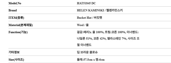 헬렌카민스키 HAT51845 DC 셀레스트 딥 브라운 클로슈 버킷햇 모자