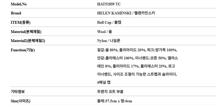 헬렌카민스키 HAT51859 TC 아델린 트렌치 코트 부클 볼캡 모자