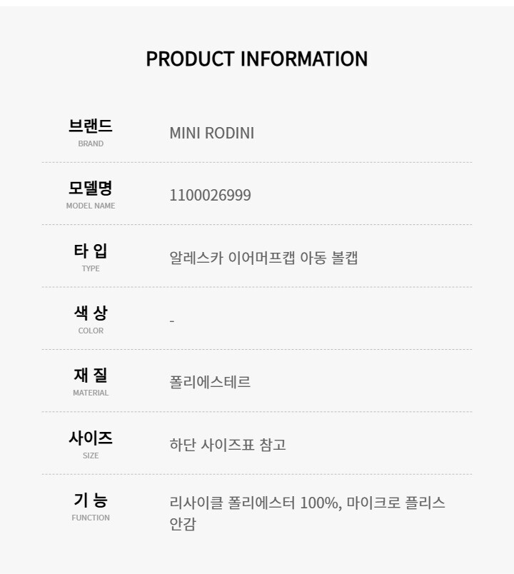 미니로디니 1100026999 (Alaska cap) 알레스카 이어머프캡 볼캡 모자