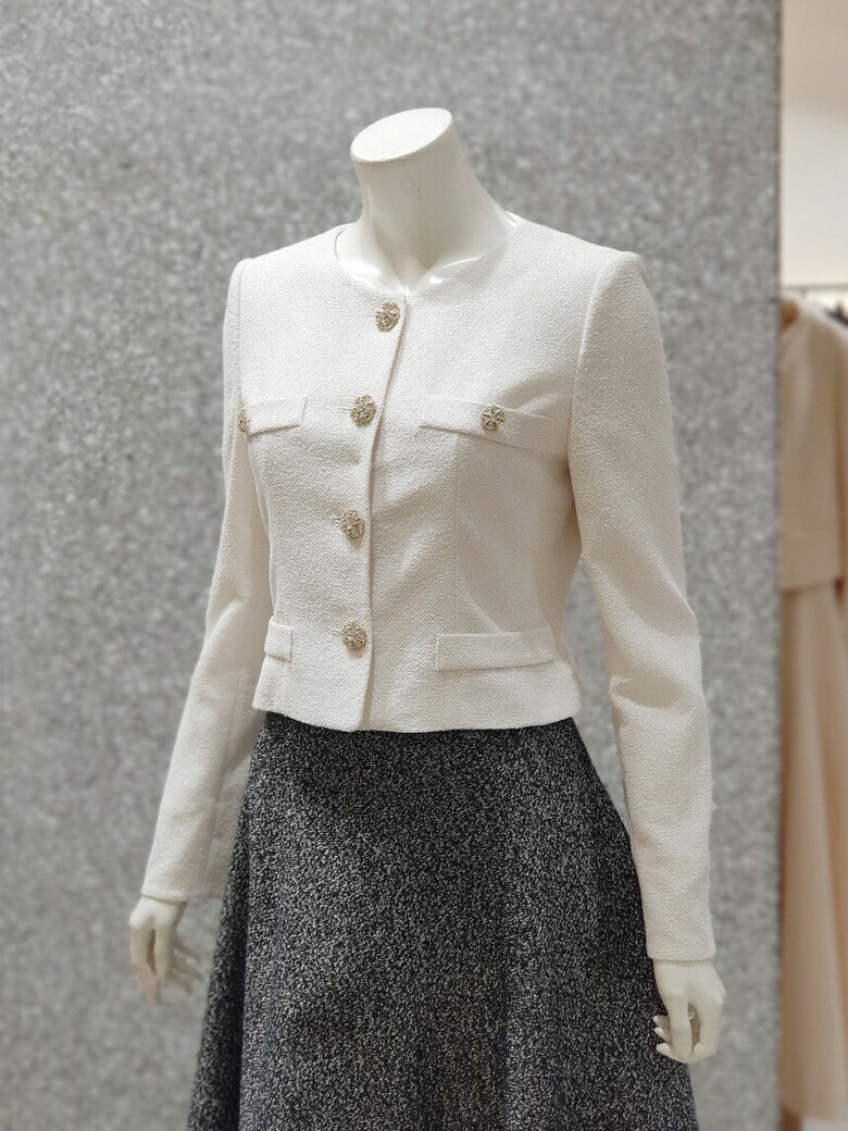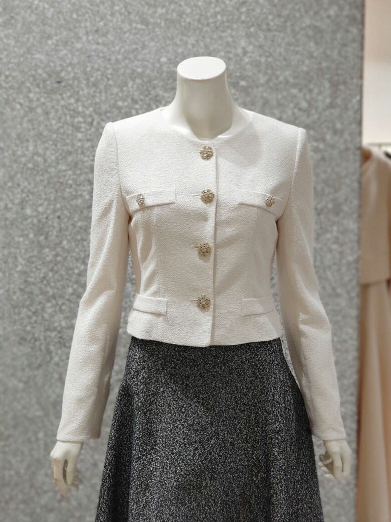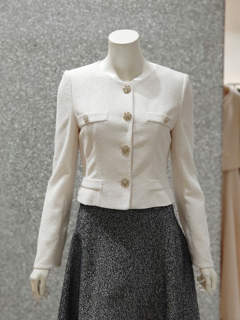 쥬얼 버튼이 어우러진 페미닌한 감각의 재킷입니다.
