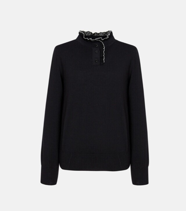 넥선 러플 디테일이 여성스러운 니트입니다.단품으로|*|이너로 입기에도 두루두루 좋아요.