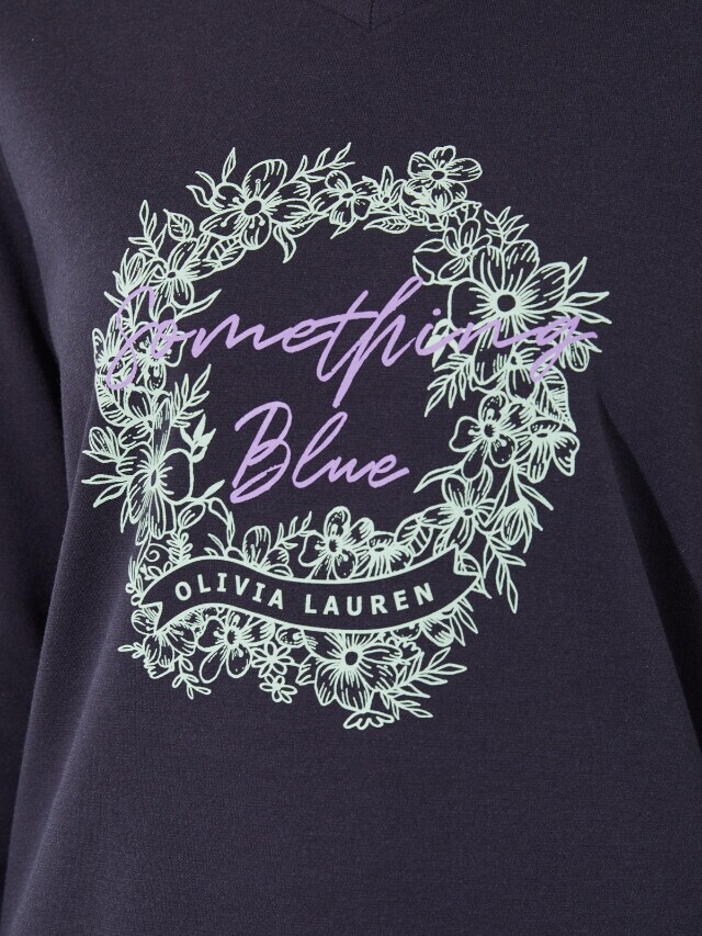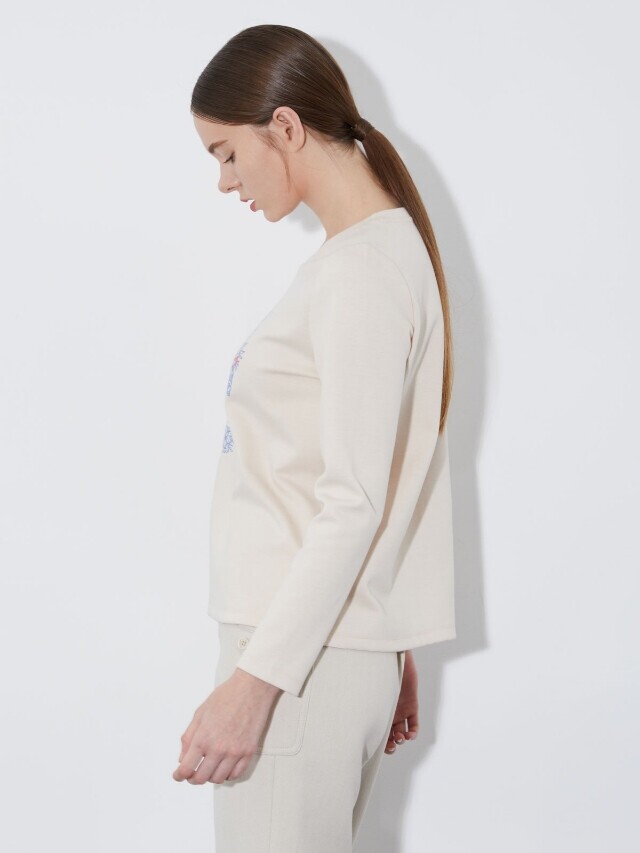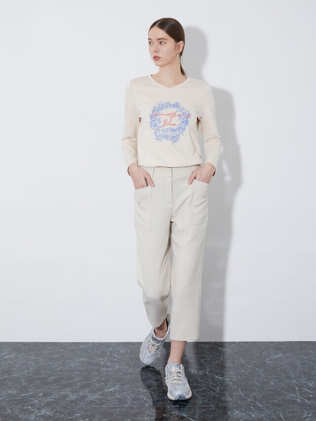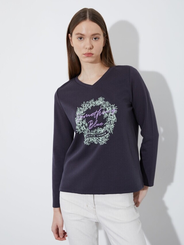 앞판에 꽃 프린트가 포인트 되는 기본 브이넥
