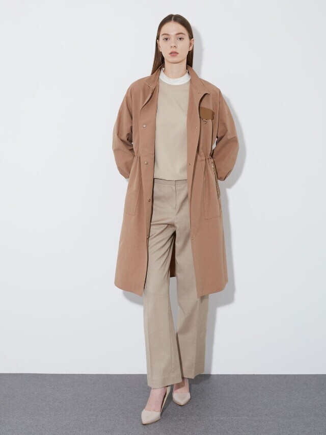 여유로운 실루엣으로 긴기장감이 돋보이는 트렌치