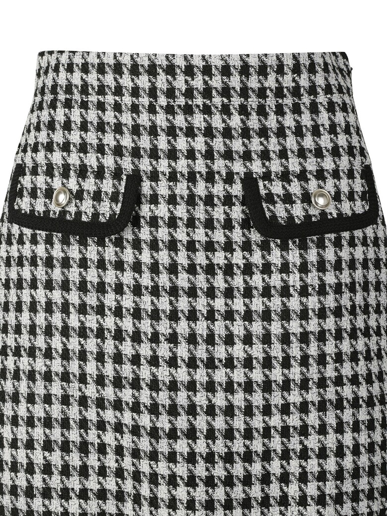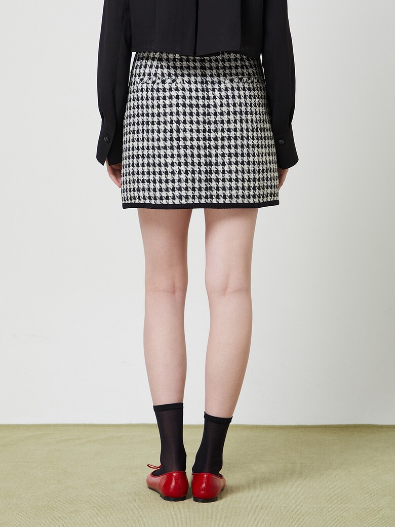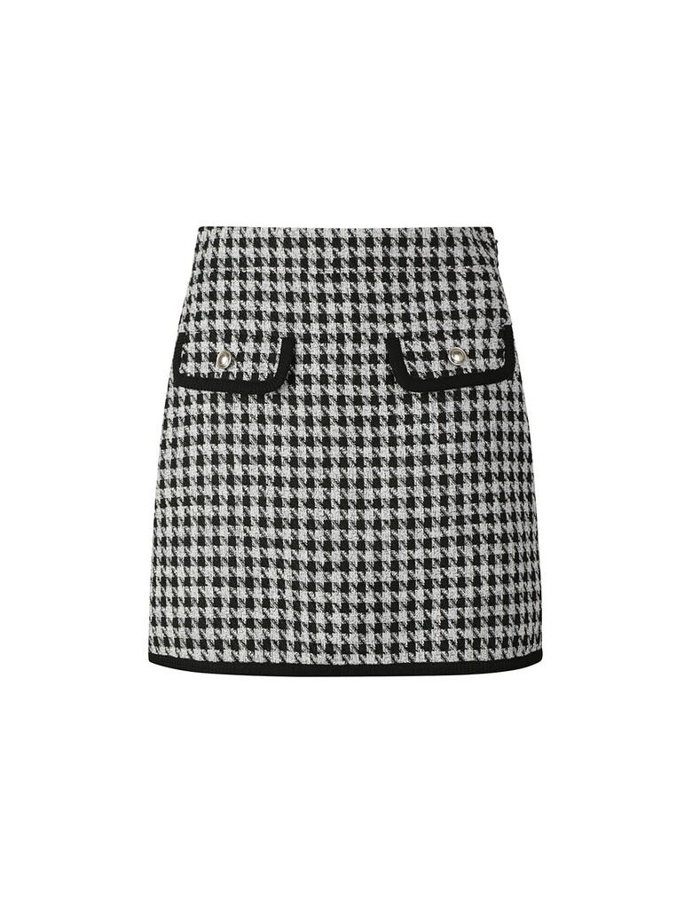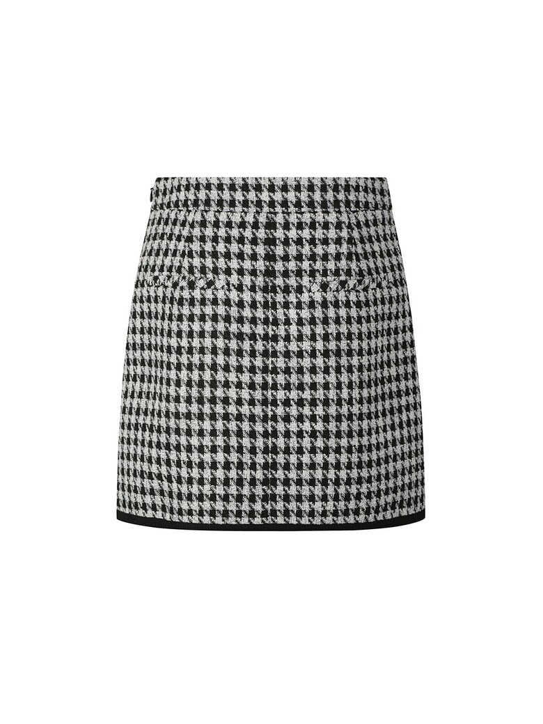 - 클래식한 무드의 하운드투스 체크 패턴의 트위드 미니스커트입니다.