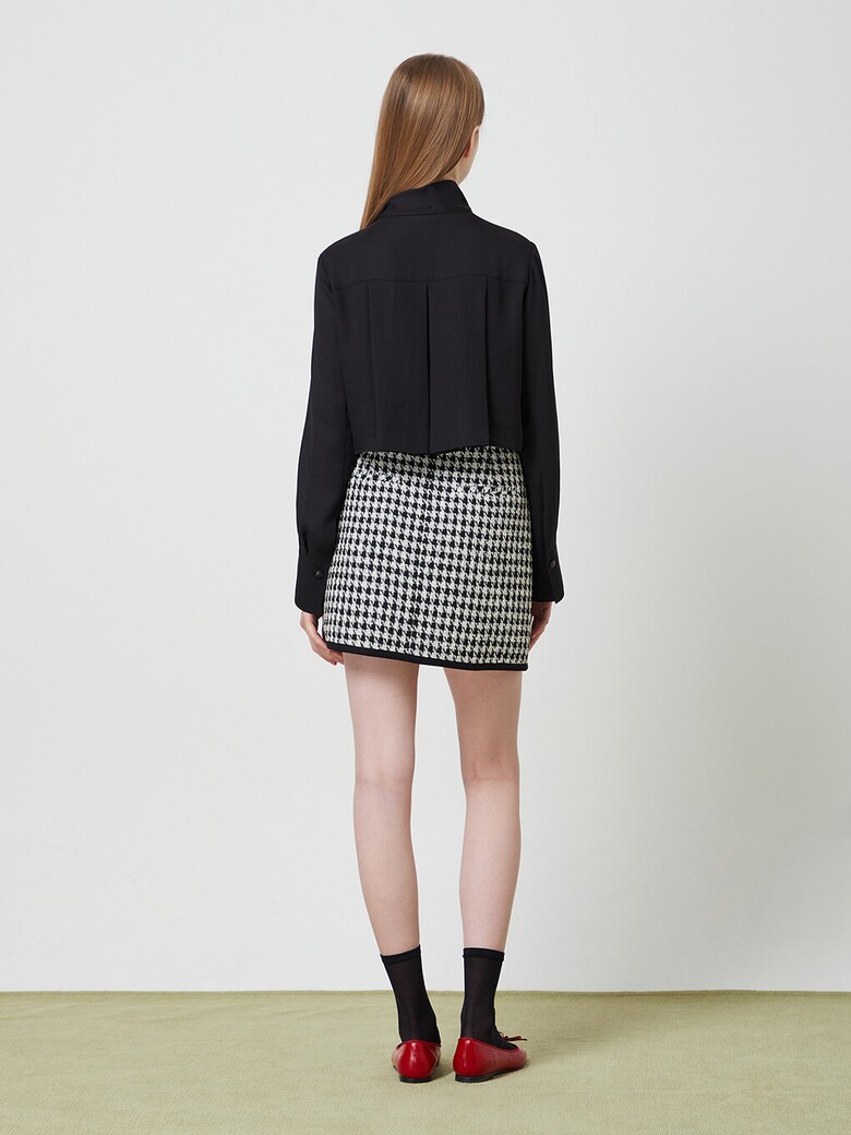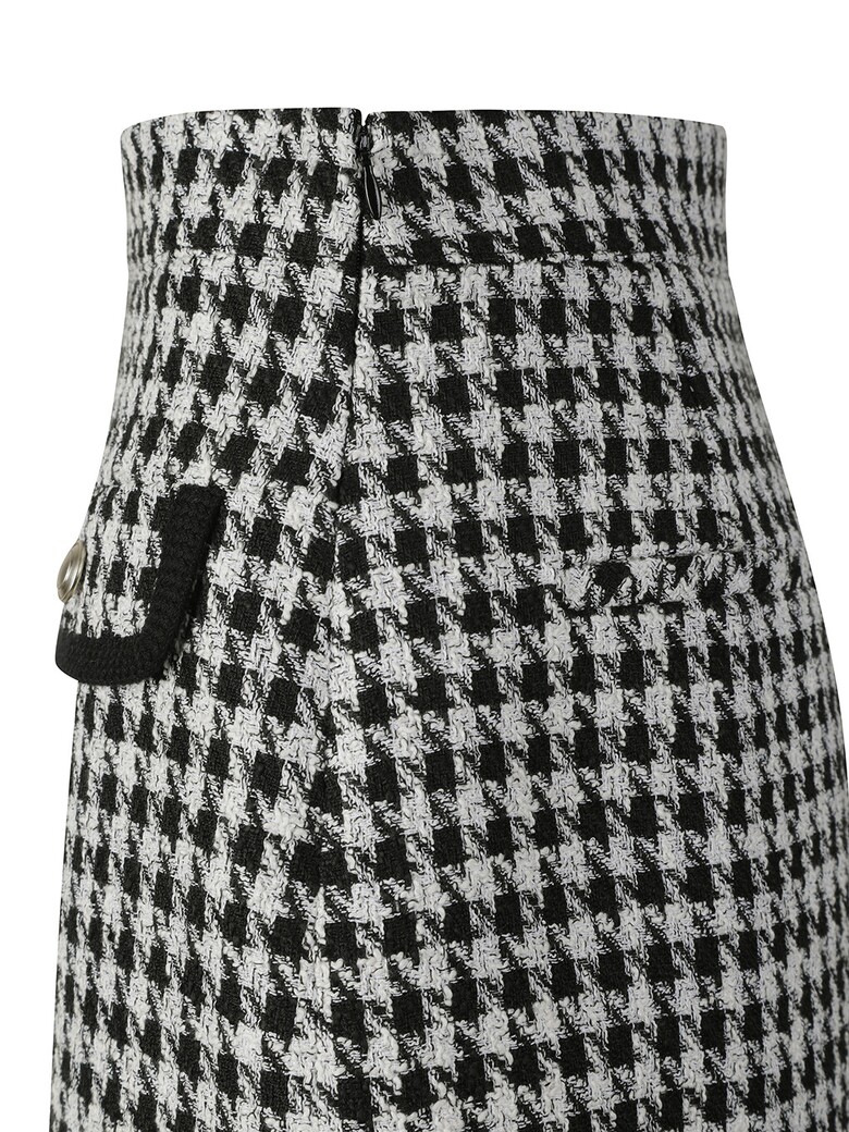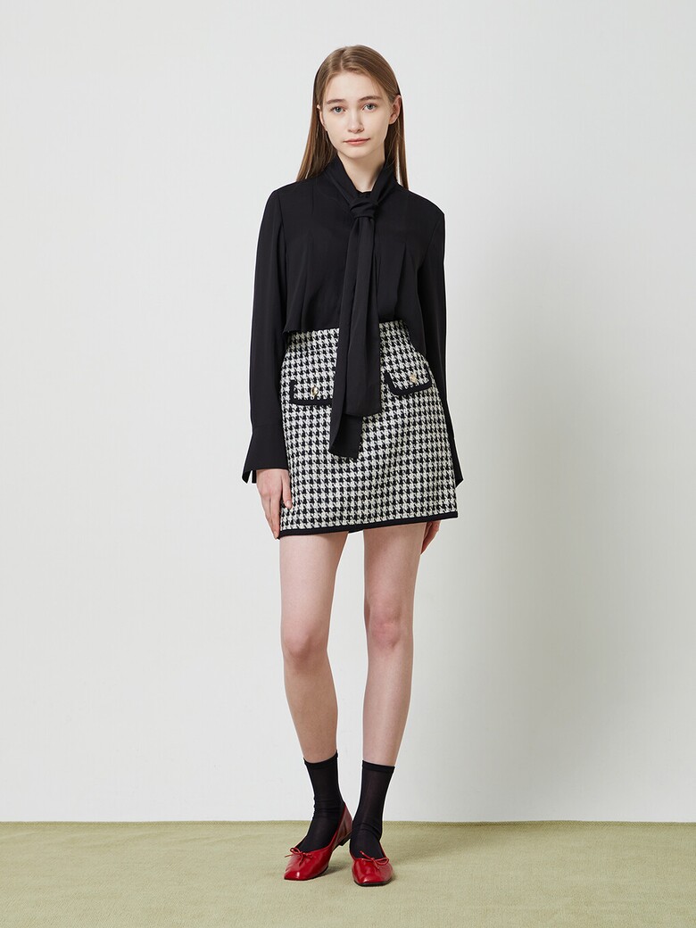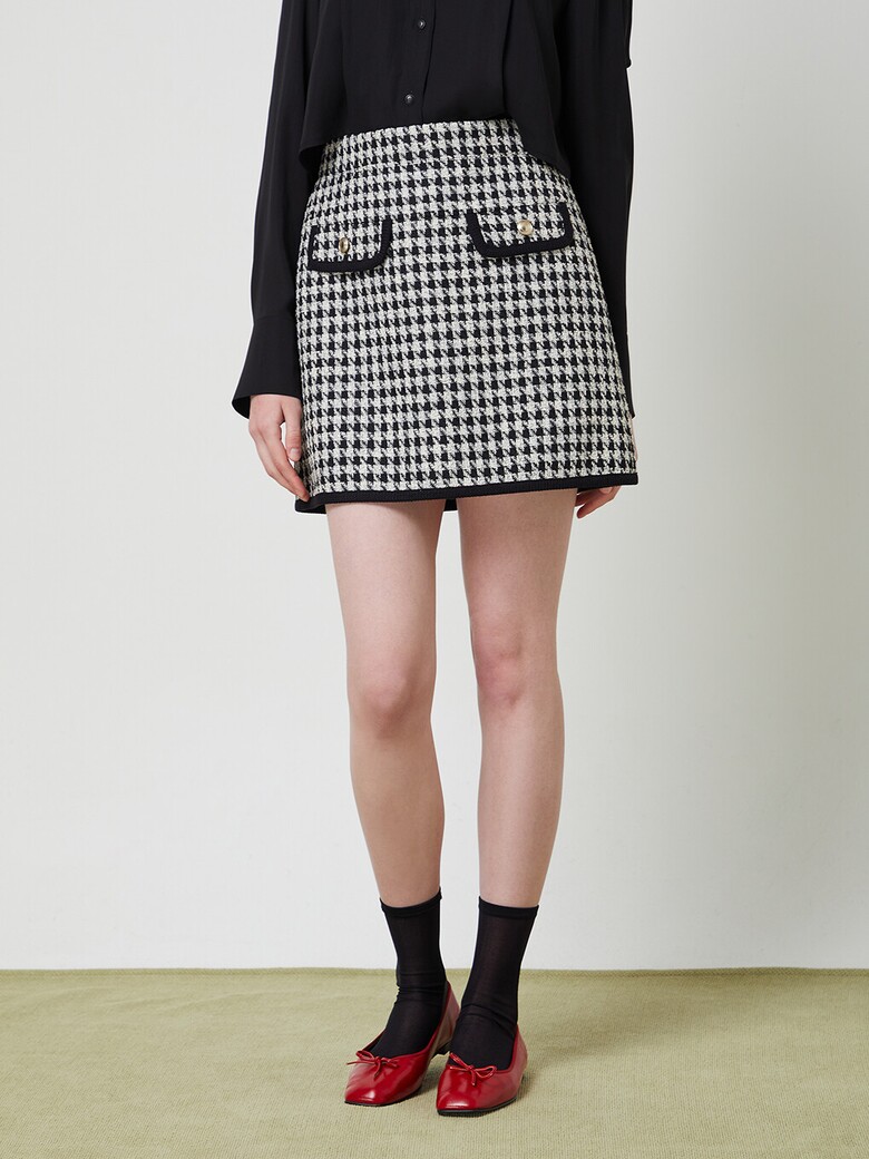 - 클래식한 무드의 하운드투스 체크 패턴의 트위드 미니스커트입니다.