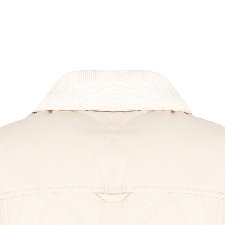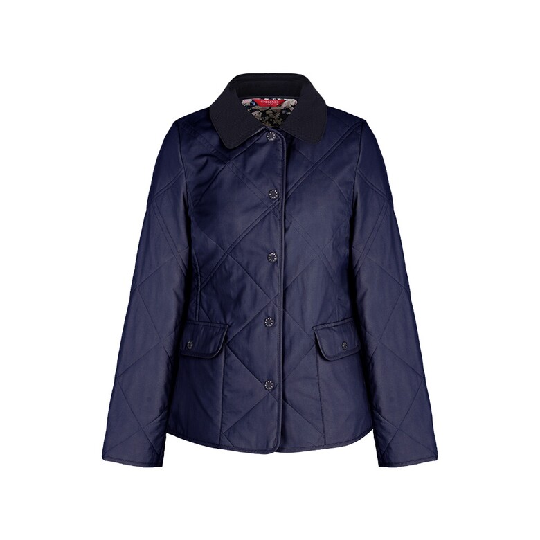 변형 다이아 퀼팅과 산뜻한 컬러의 플라워 안감을 넣어 퀼팅한 코튼 혼방 패딩자켓. 착용시 가볍고 캐주얼하면서 경쾌한 느낌을 주는 아이템.