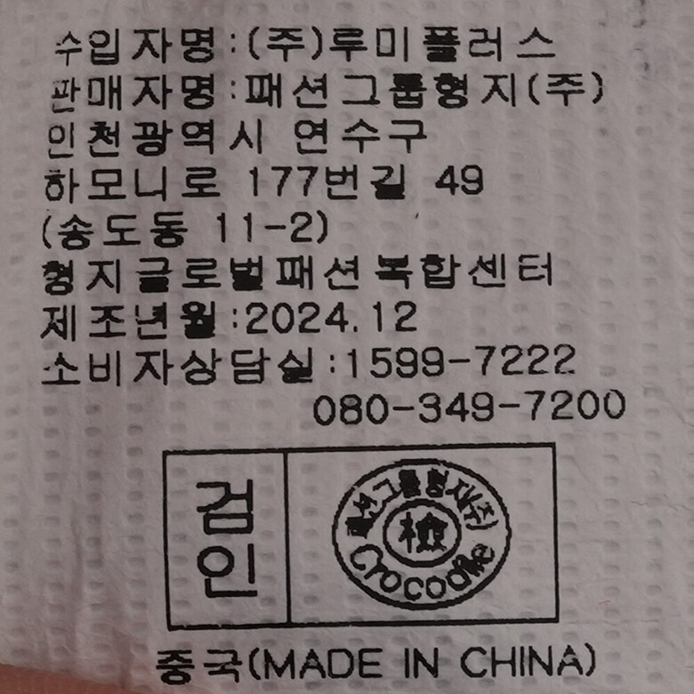 | 1. 제품 소재 (섬유의 조성 또는 혼용률을 백분율로 표시, 기능성인 경우 성적서 또는 허가서) | 상품상세참조 |