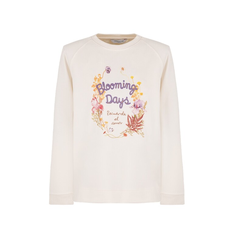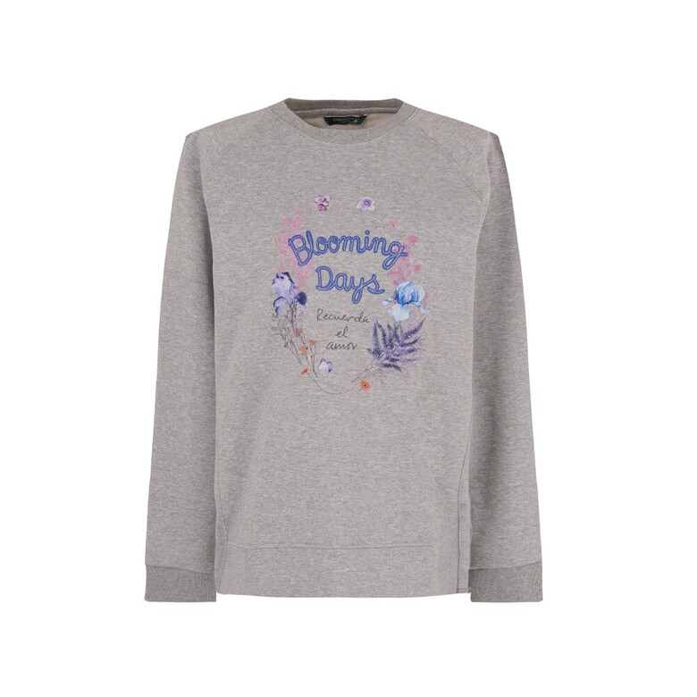 구김성이 없어 데일리로 착용하기 용이하며 앞판의 원포인트가 여성스러운 맨투맨입니다