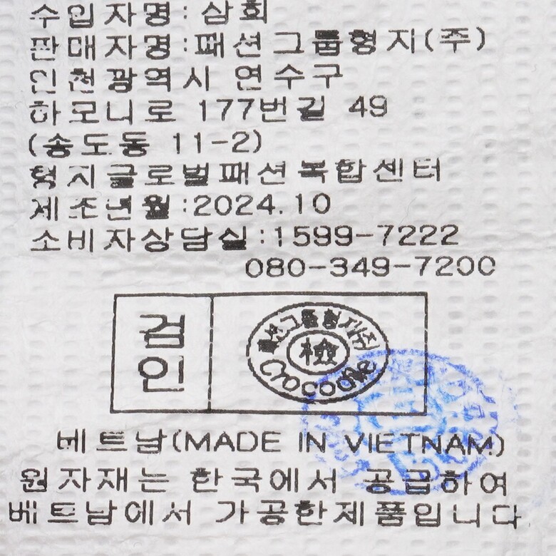 | 1. 제품 소재 (섬유의 조성 또는 혼용률을 백분율로 표시, 기능성인 경우 성적서 또는 허가서) | 상품상세참조 |