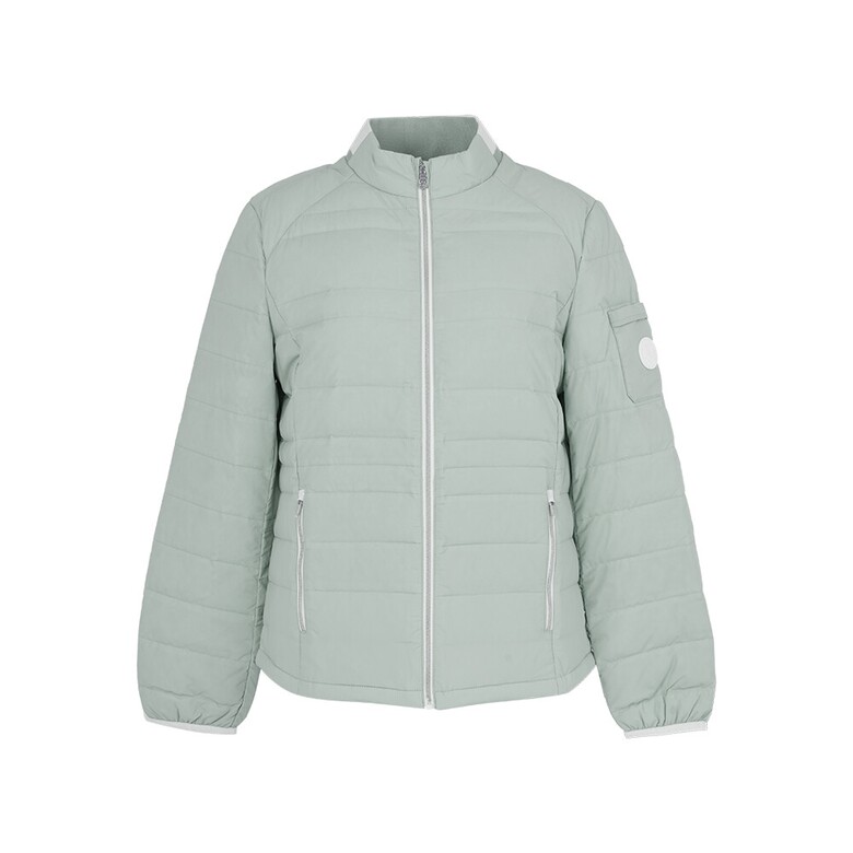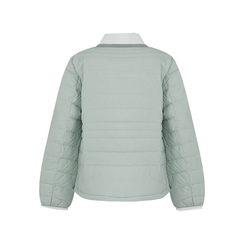 산뜻한 컬러감과 카라 컬러 니팅을 넣어 경쾌함을 살린 경량 다운. 나일론혼방소재로 착용시 가벼움.