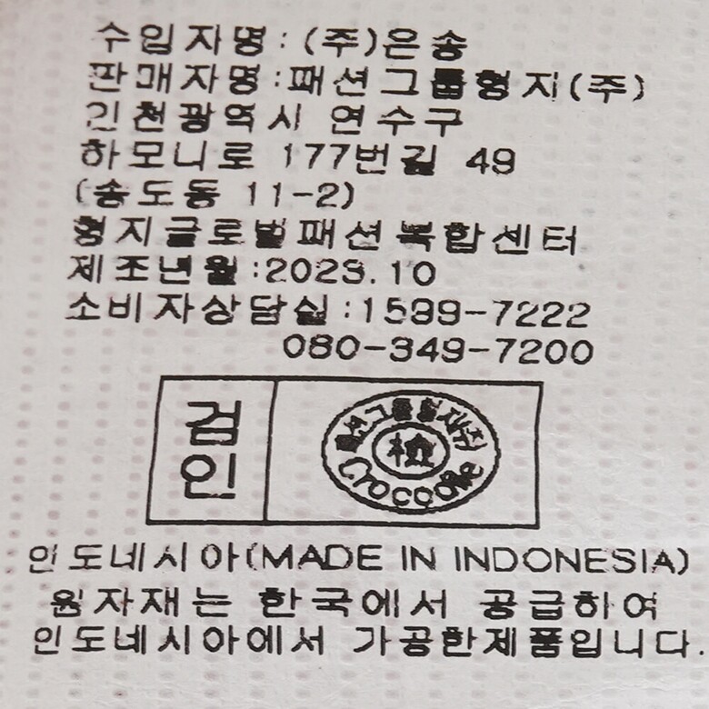 | 1. 제품 소재 (섬유의 조성 또는 혼용률을 백분율로 표시, 기능성인 경우 성적서 또는 허가서) | 상품상세참조 |