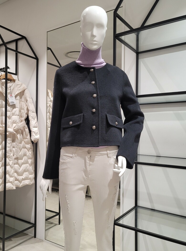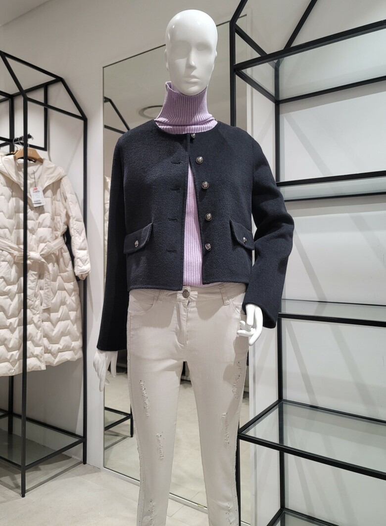 SI블랙 포켓 단추 포인트 울자켓SJJRX9115