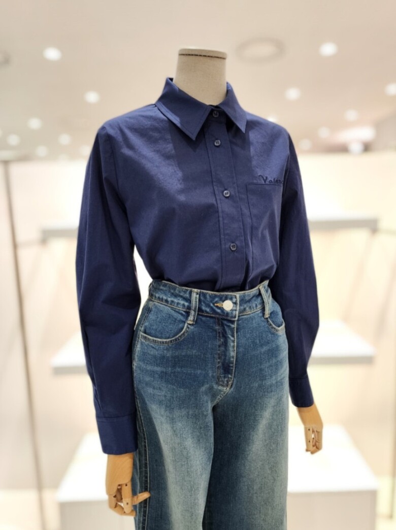 [발렌시아]레터링 포인트 기본 셔츠 블라우스 242MB15