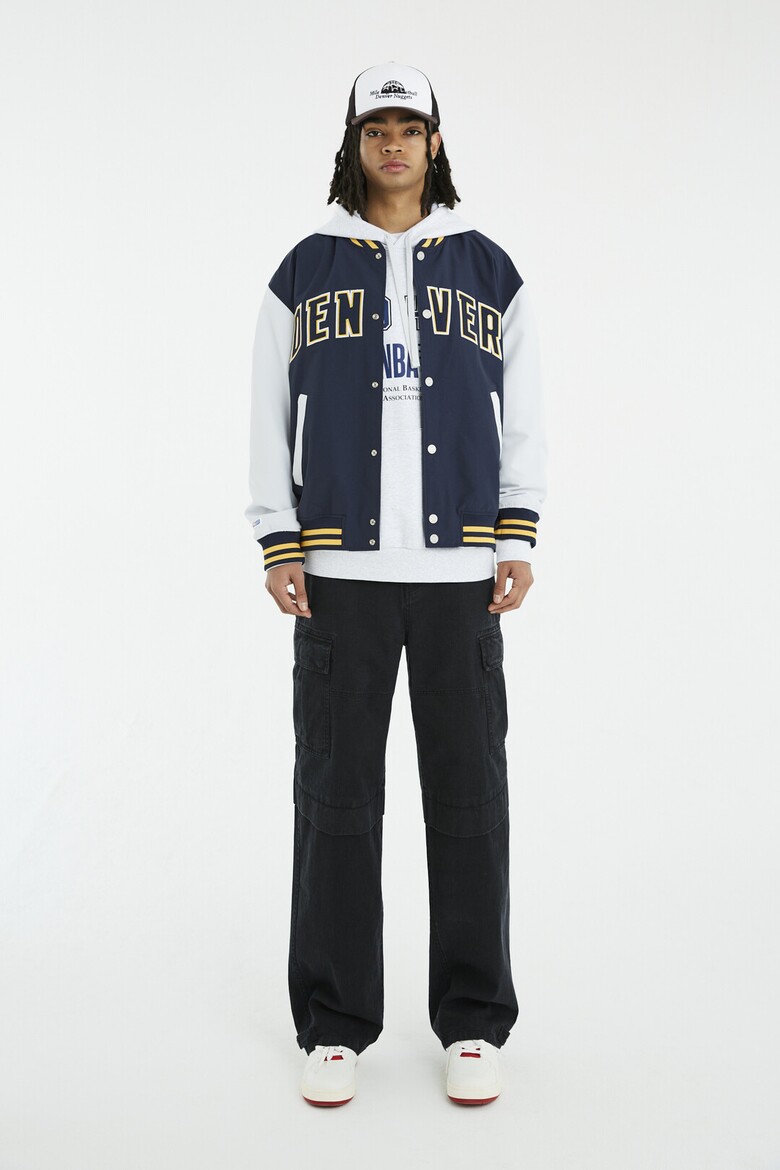 "NBA 바시티 피그먼트 와이드 카고 데님 팬츠"