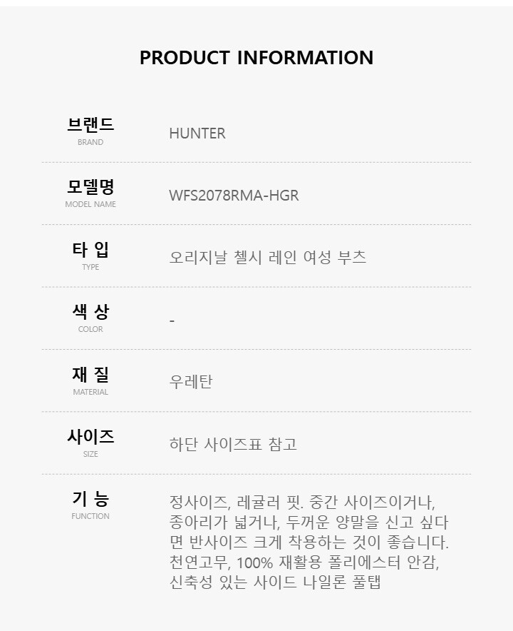 헌터 WFS2078RMA-HGR 오리지날 첼시 레인 부츠