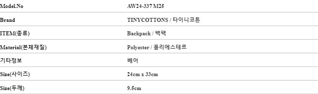 타이니코튼 AW24-337 M25 베어 주니어 백팩 가방