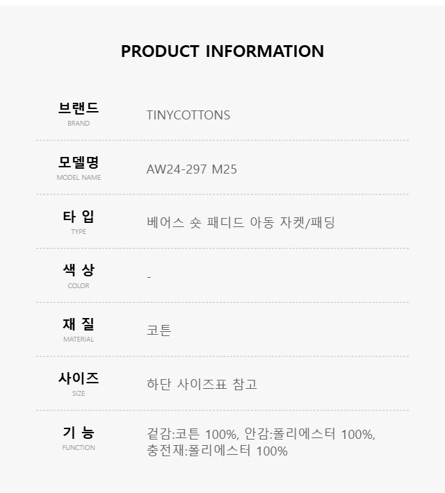 타이니코튼 AW24-297 M25 (Bears short padded jacket) 베어스 숏 패디드 아동 자켓