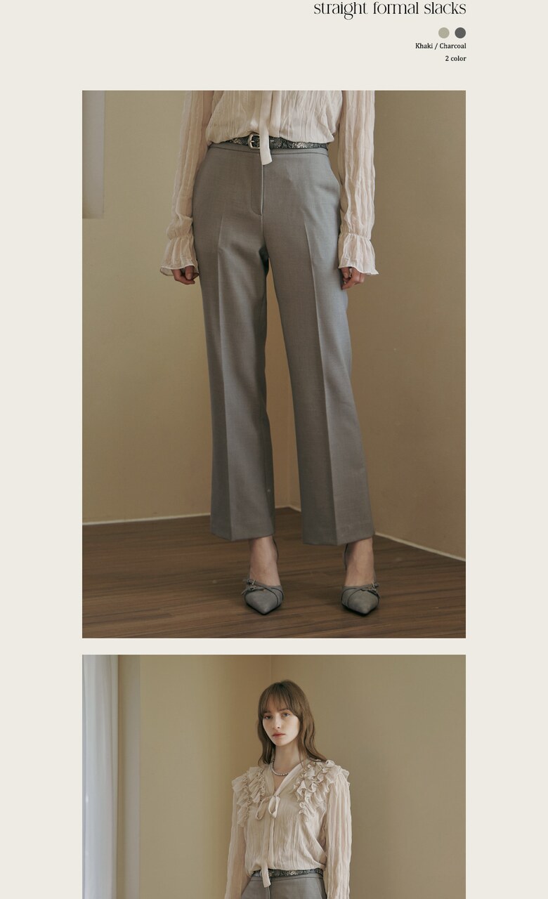 포멀한 무드의 스트레이트 슬랙스입니다.