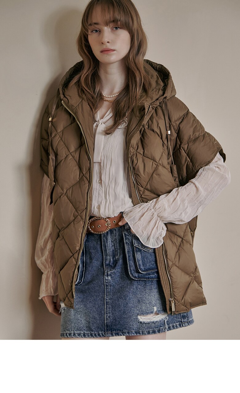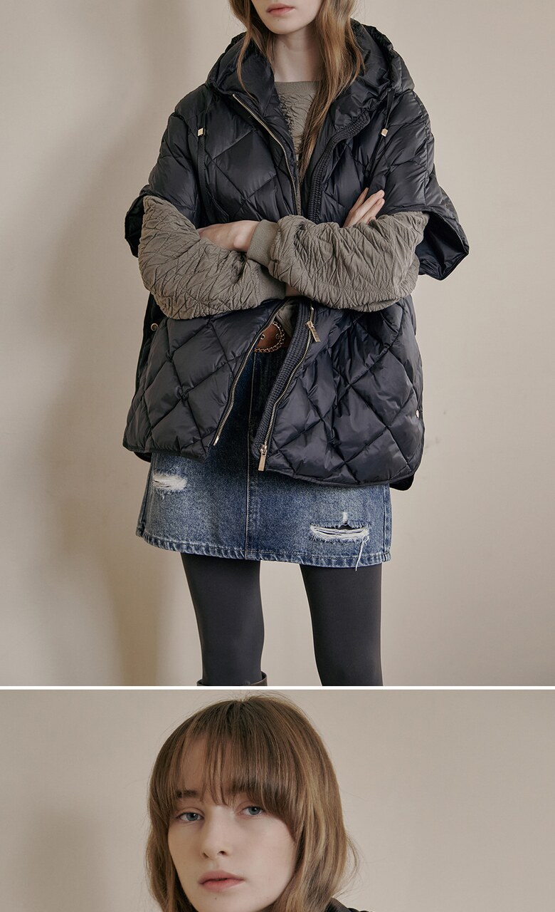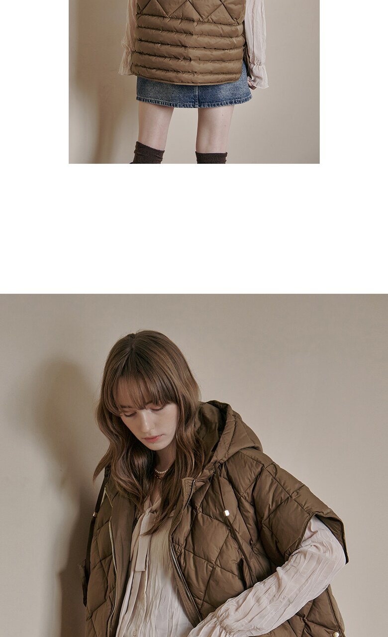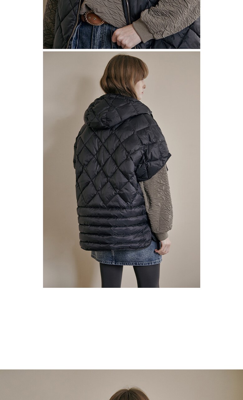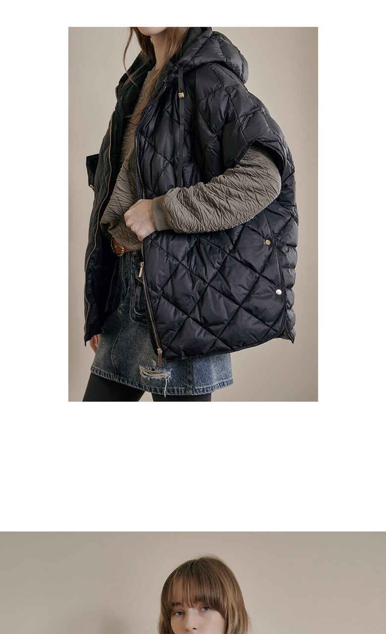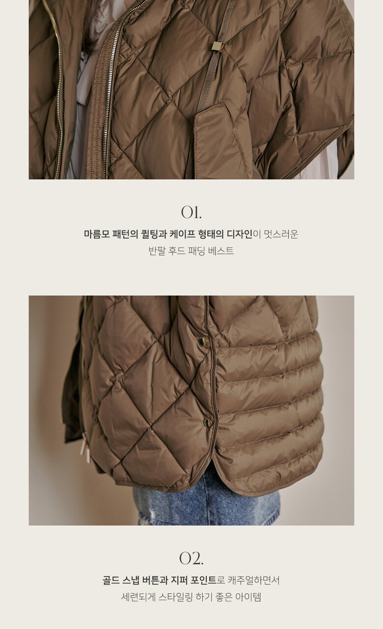 마름모 퀼팅 케이프 후드 패딩 베스트