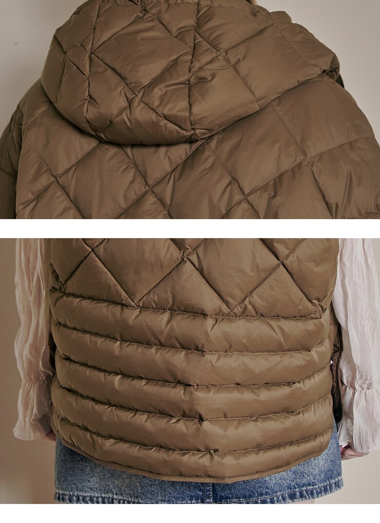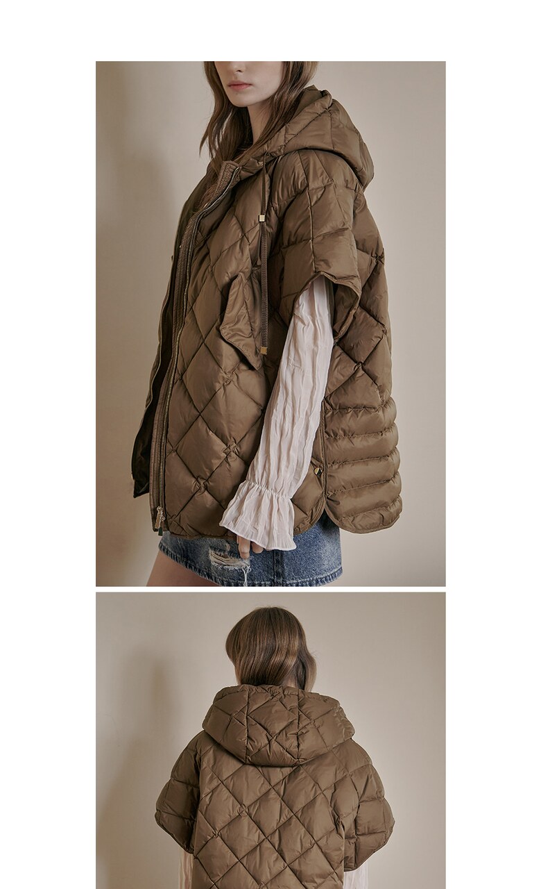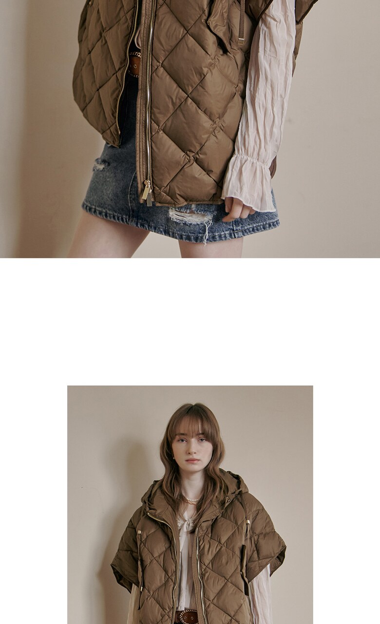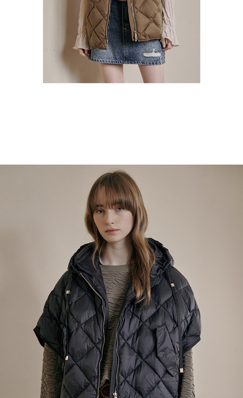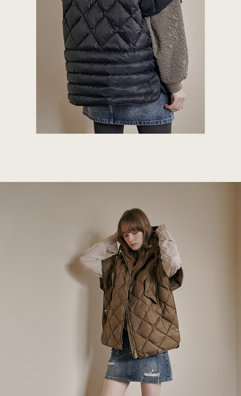 마름모 퀼팅 케이프 후드 패딩 베스트