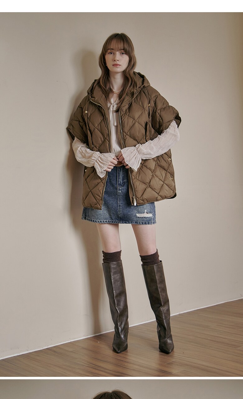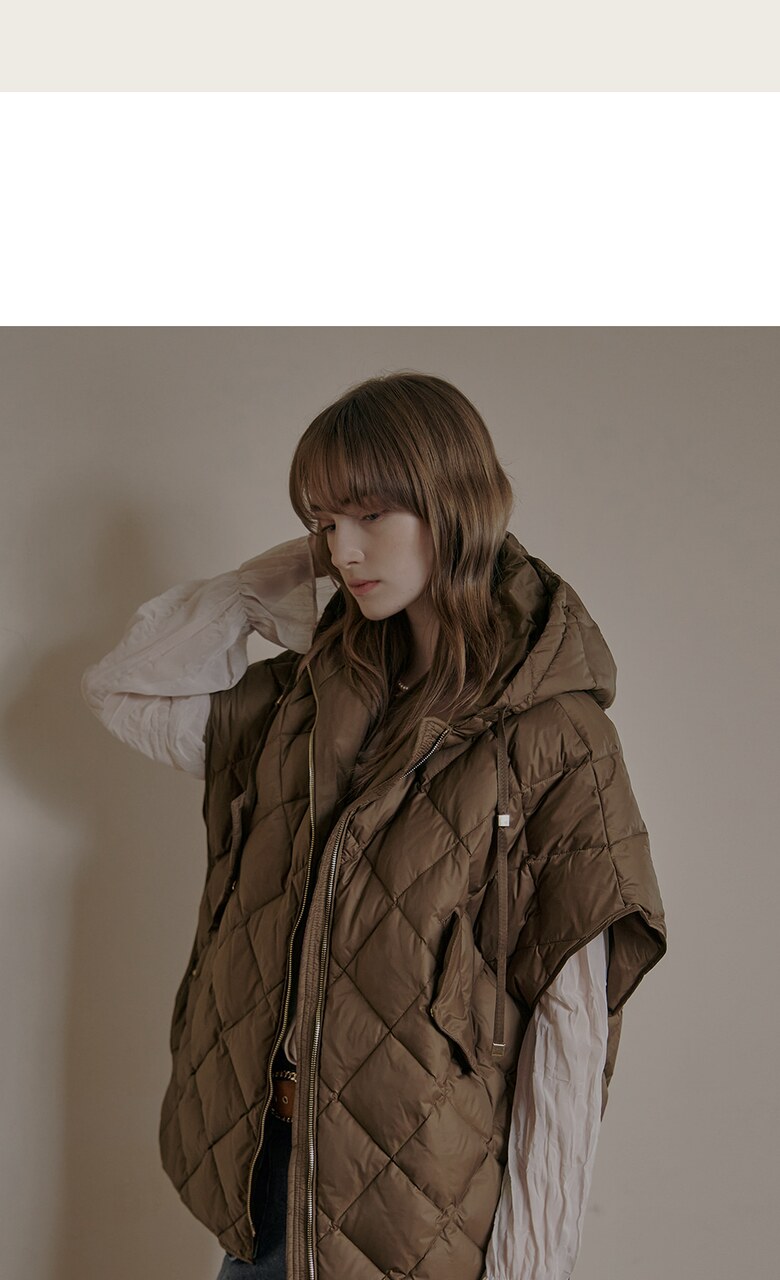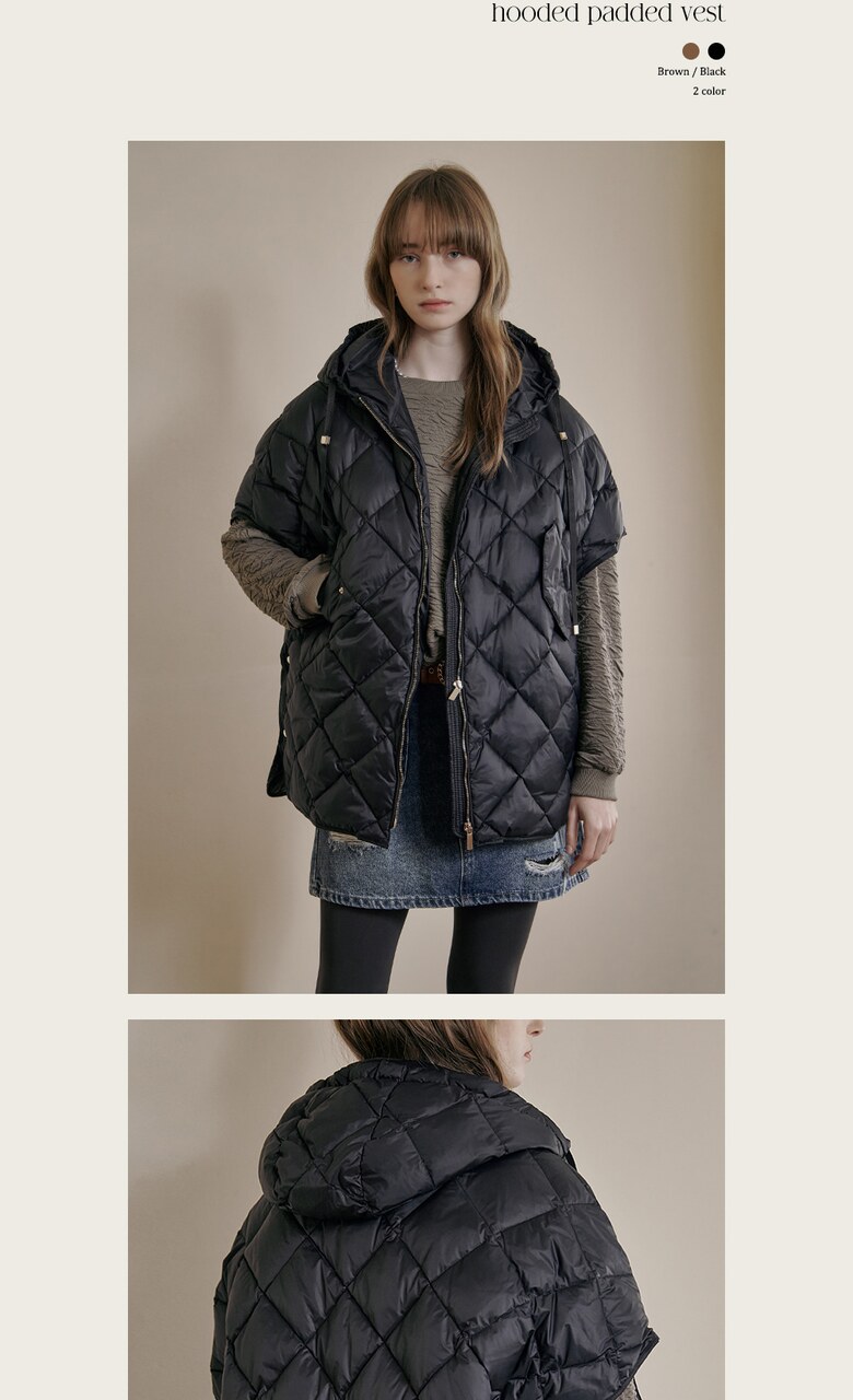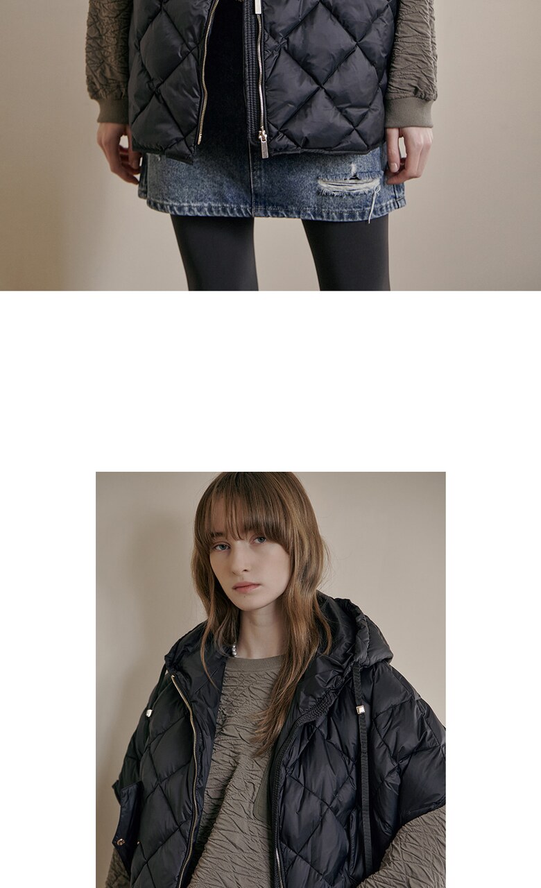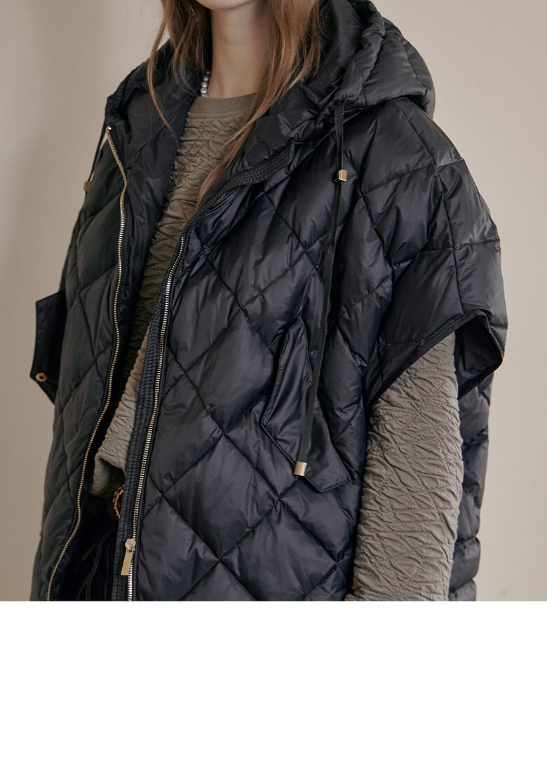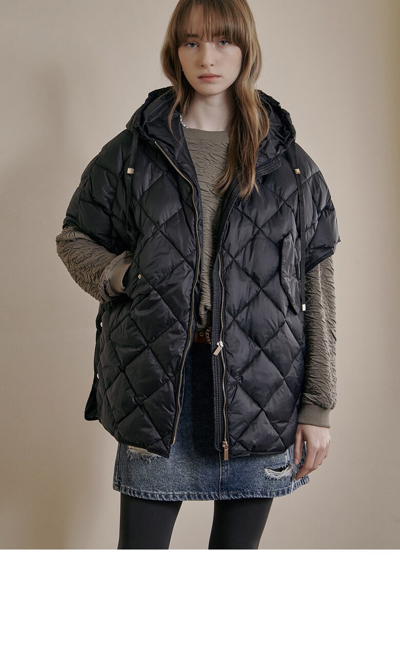 마름모 퀼팅 케이프 후드 패딩 베스트