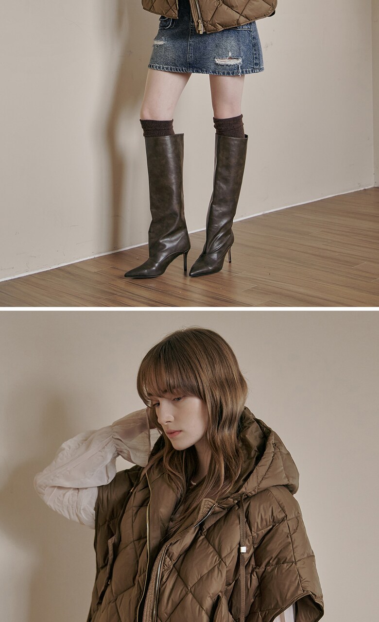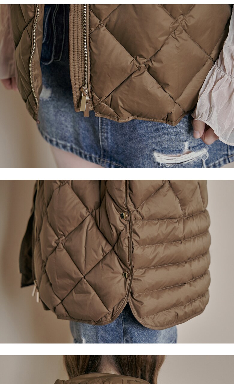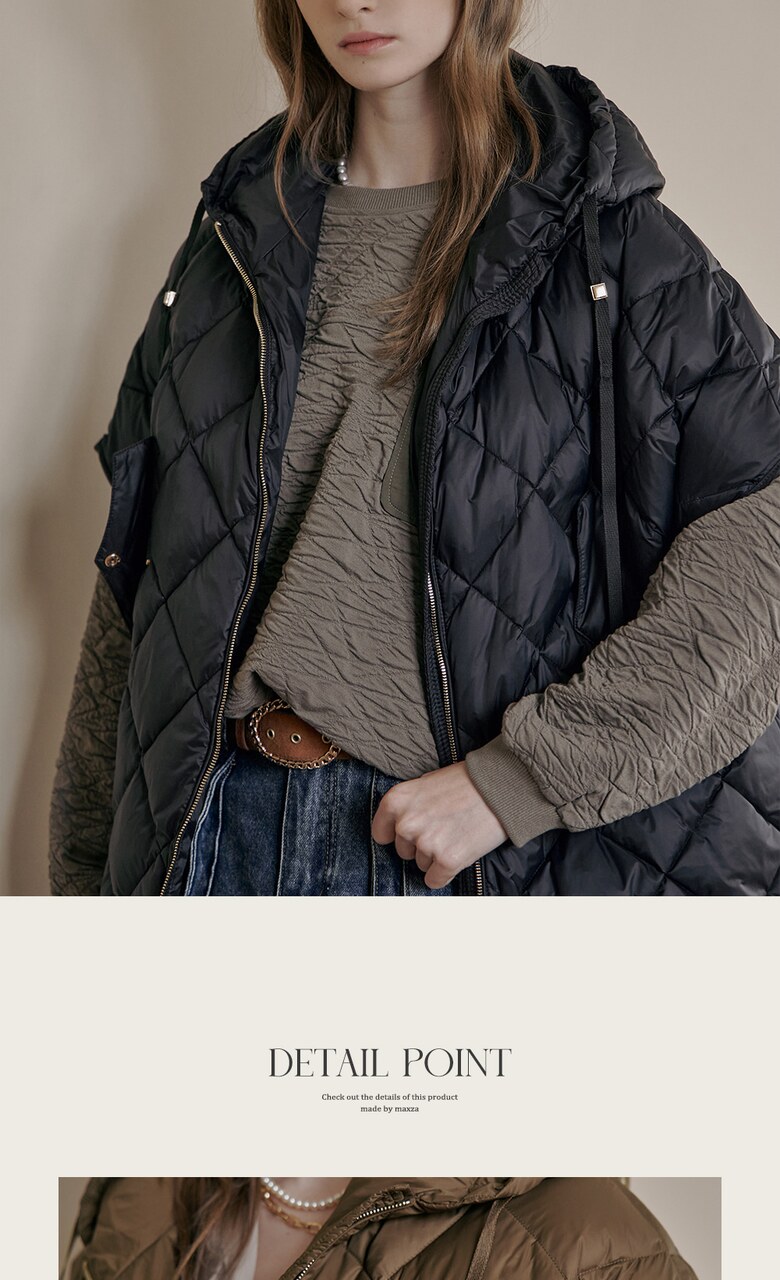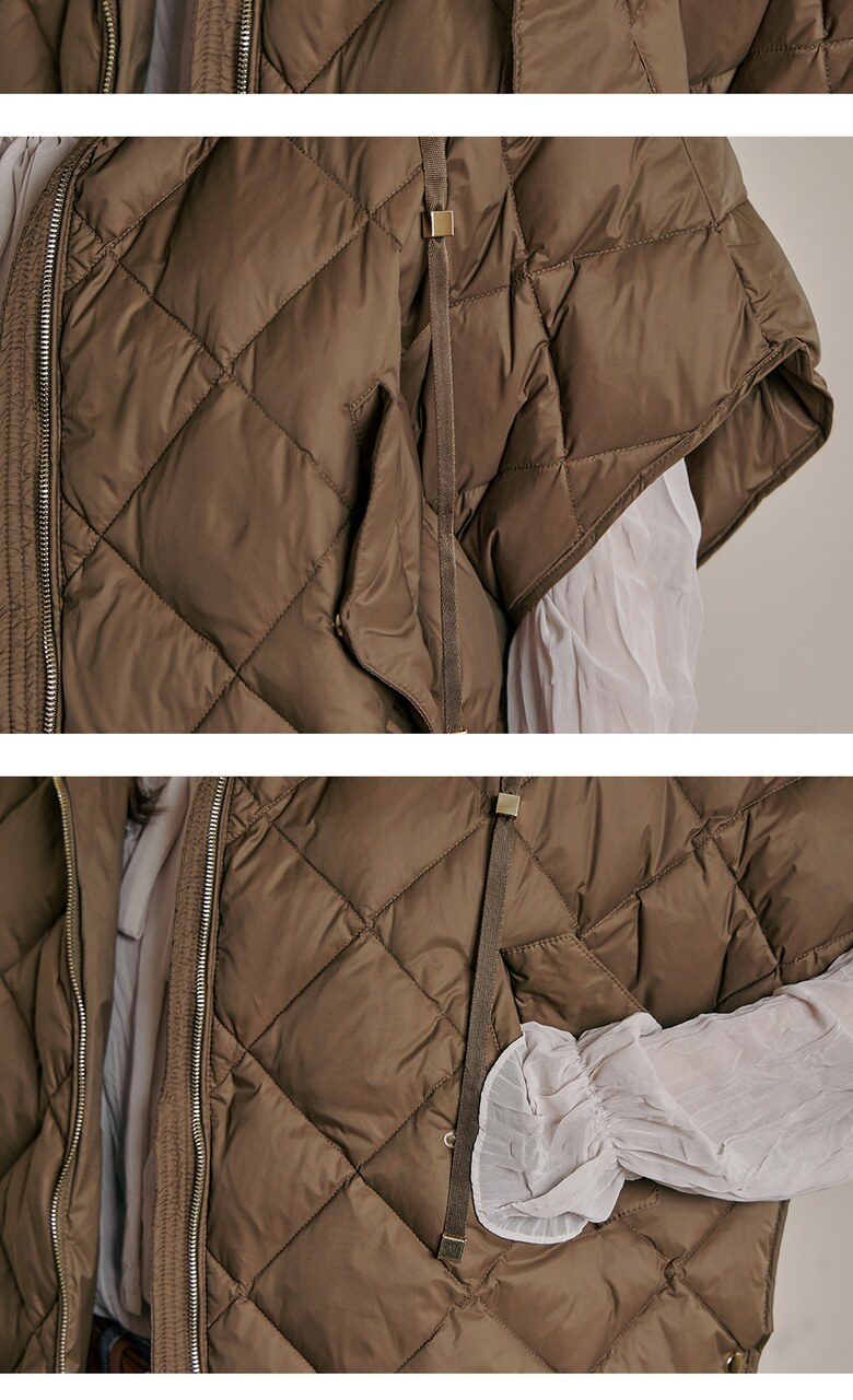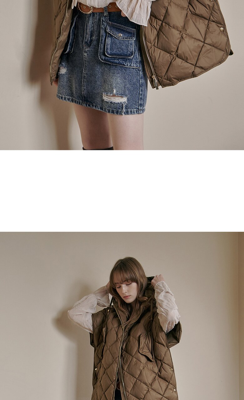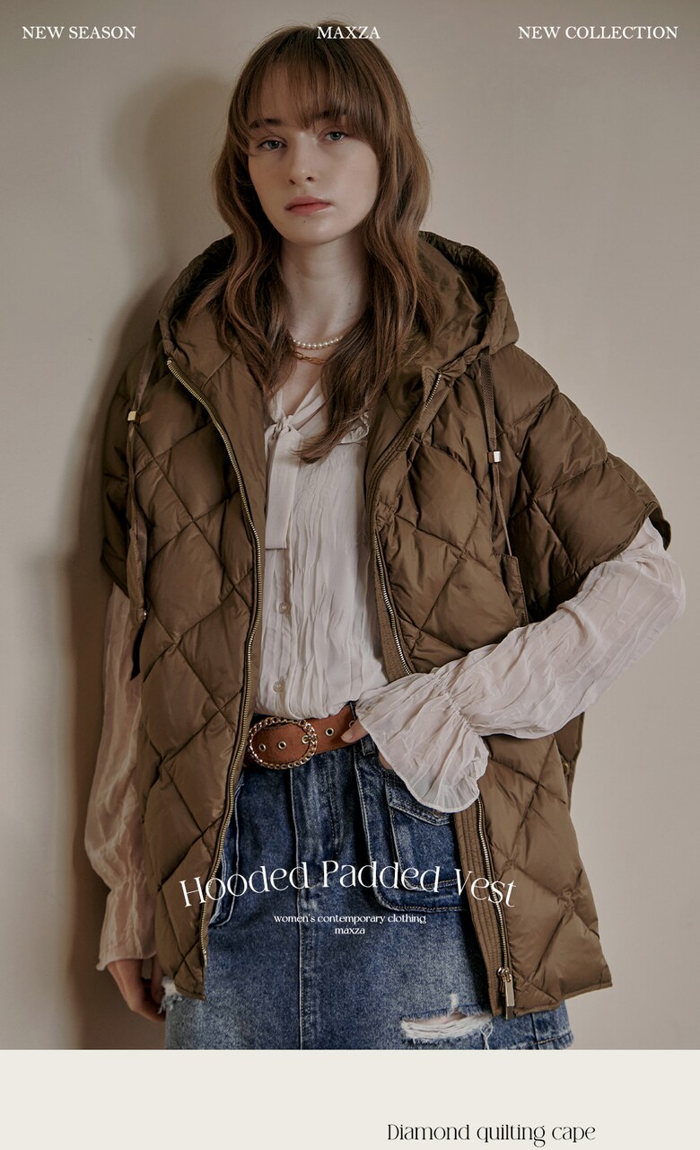 마름모 퀼팅 케이프 후드 패딩 베스트