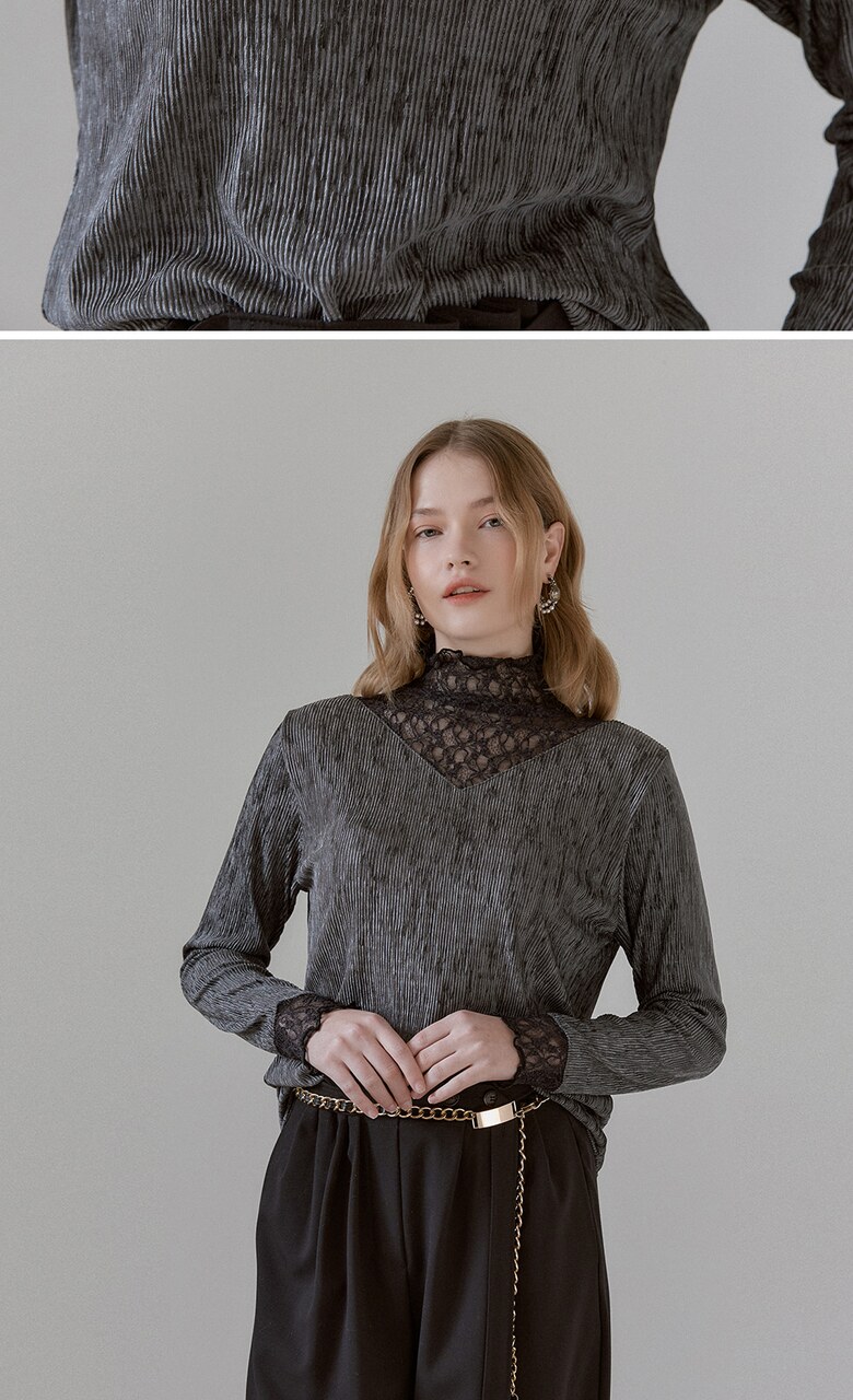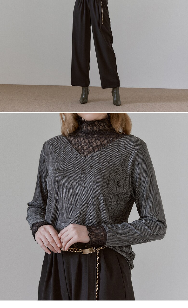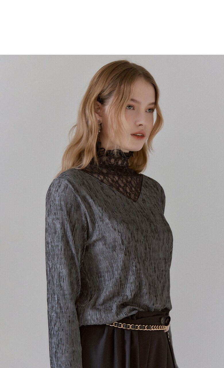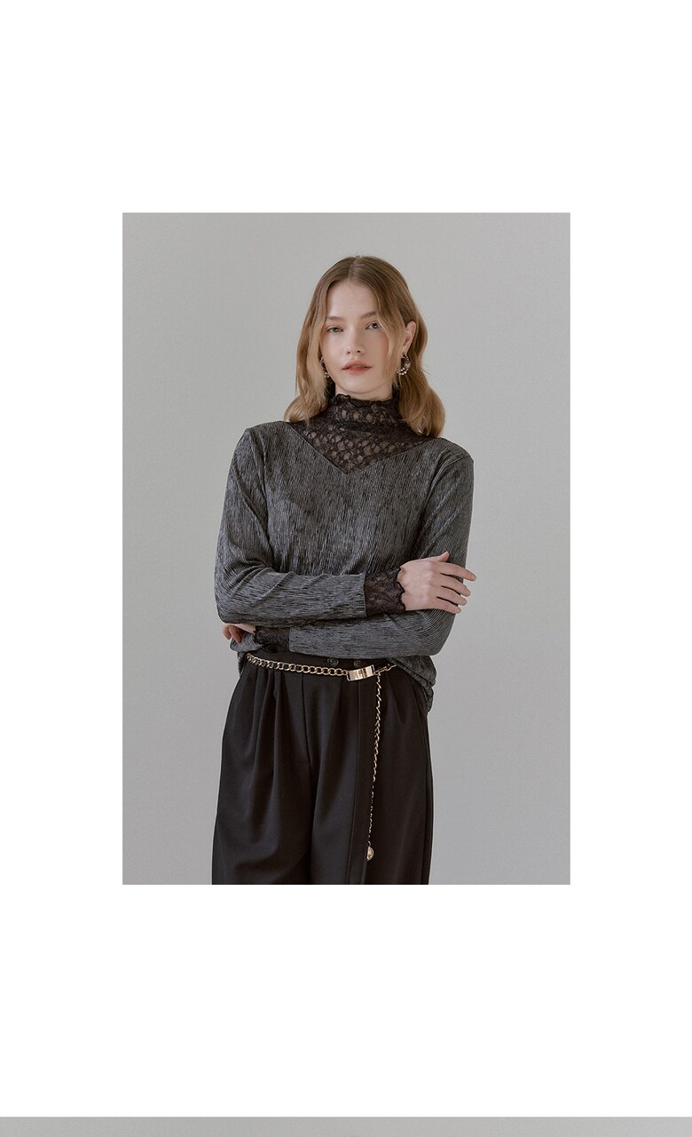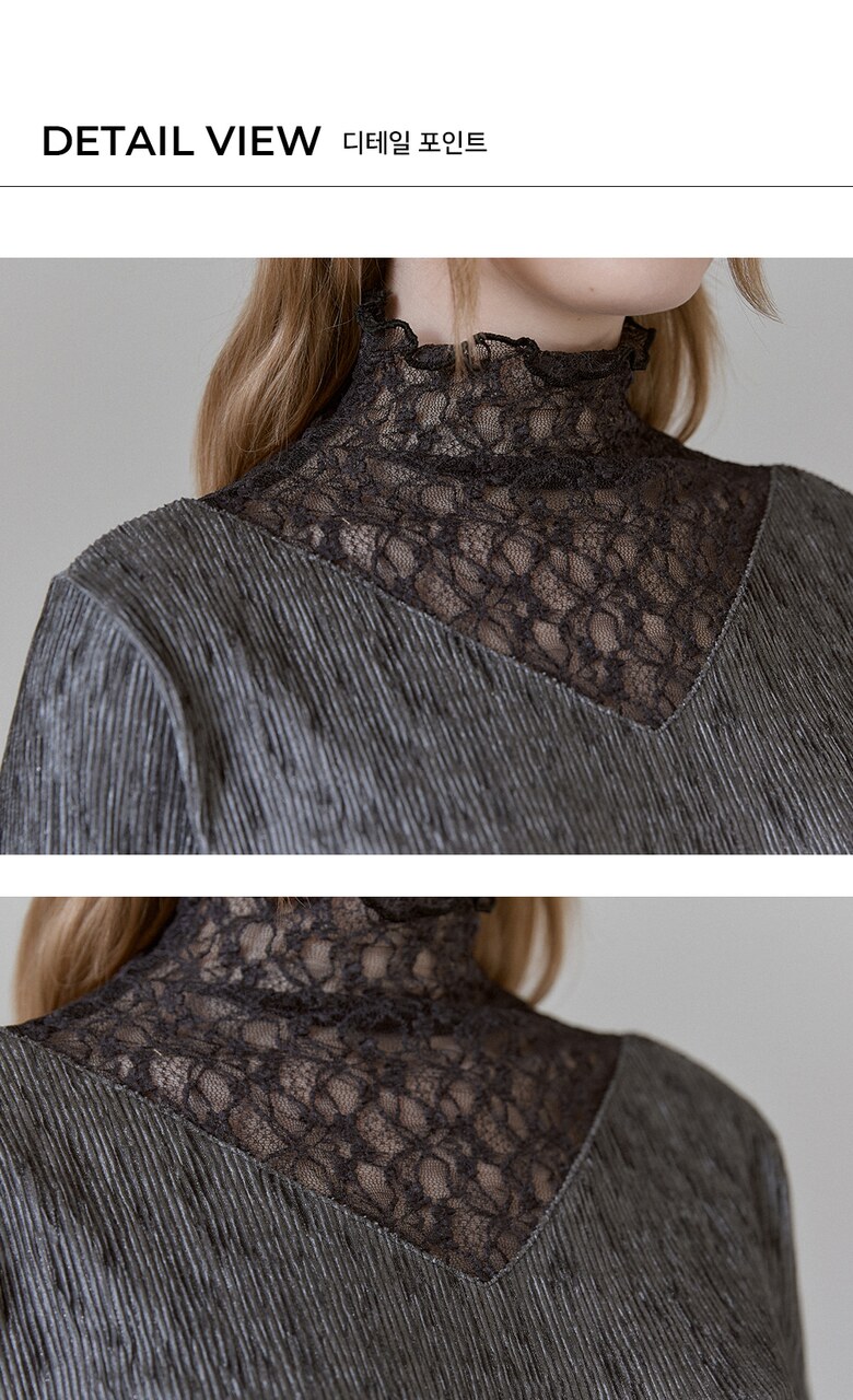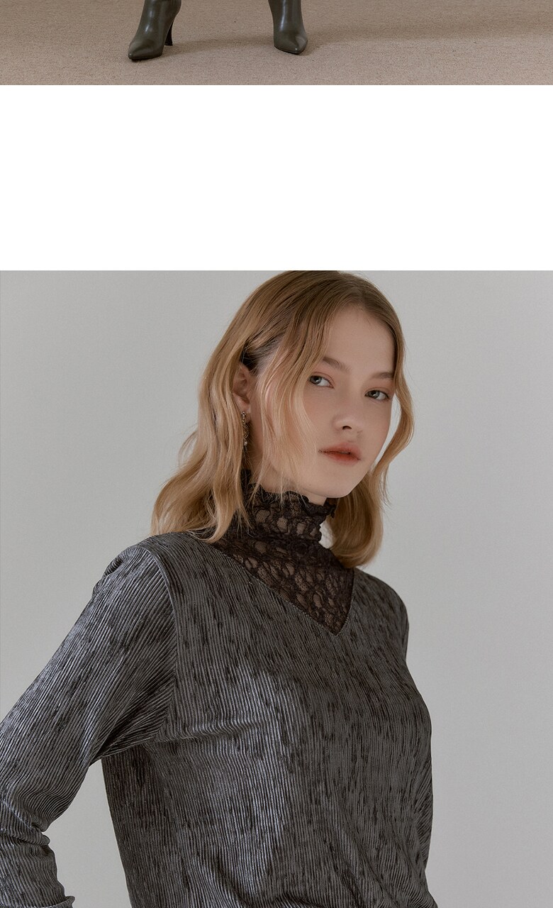 레이스 블록 메탈믹스 벨벳 반목폴라 티셔츠