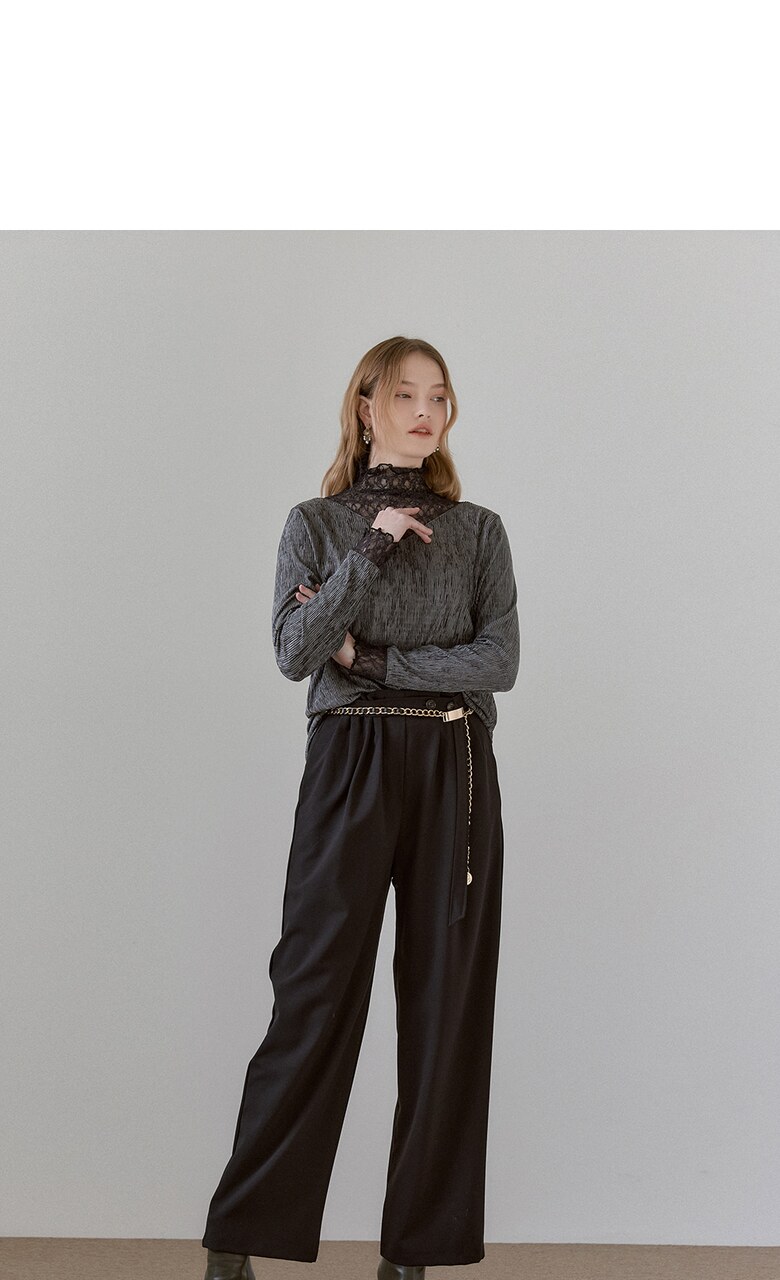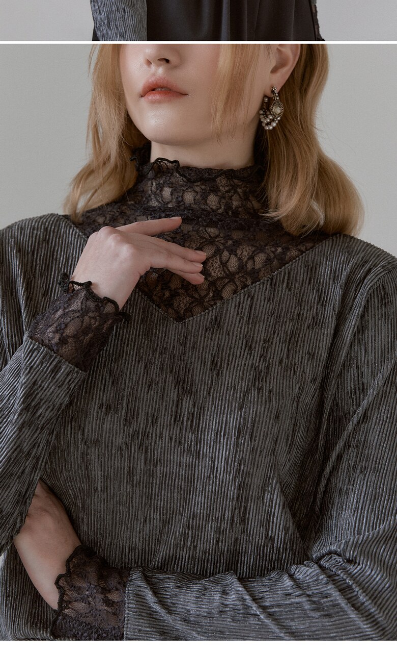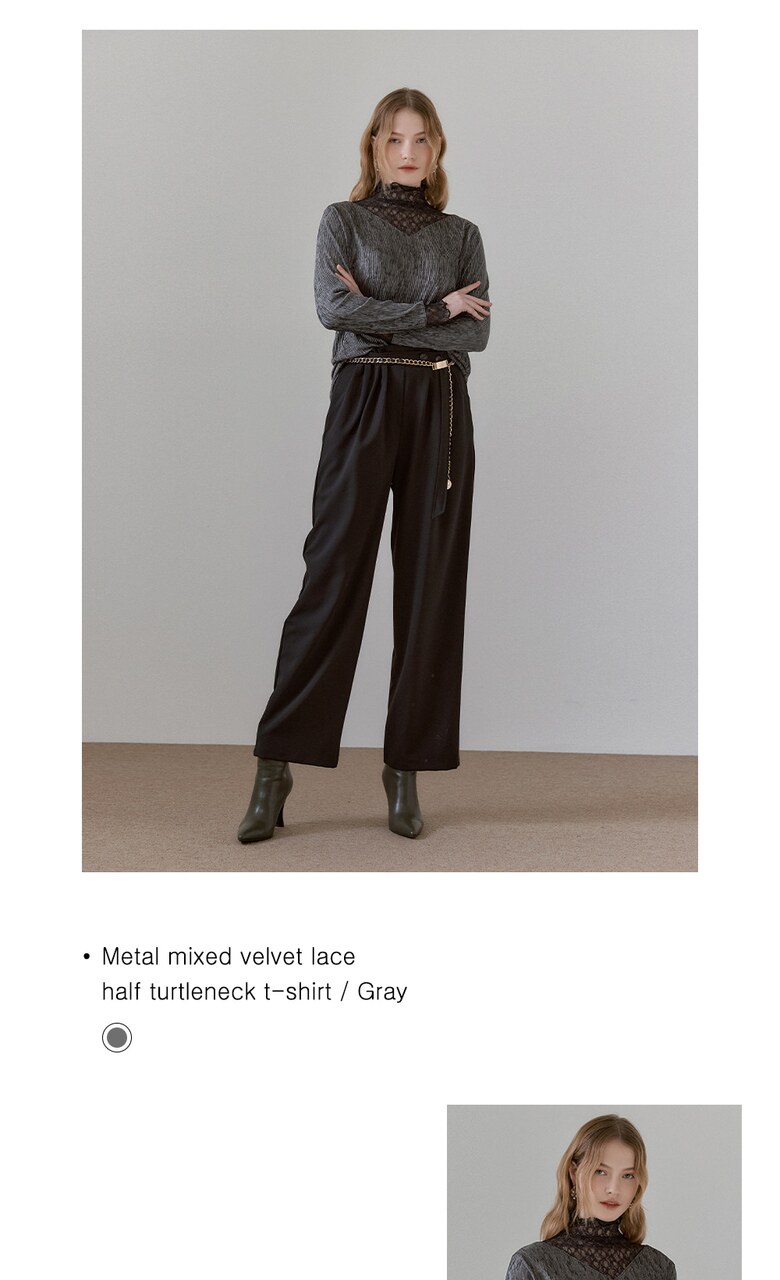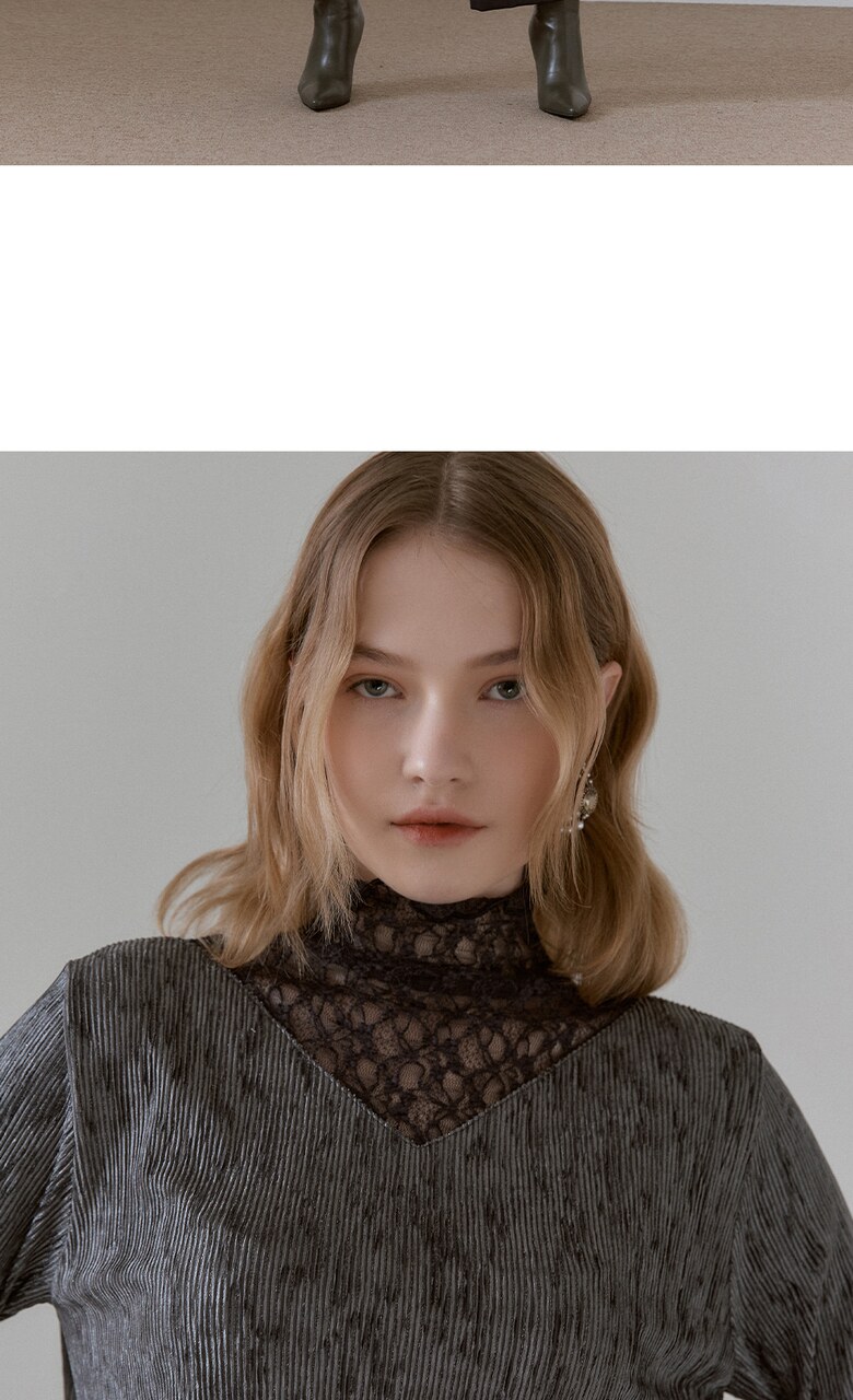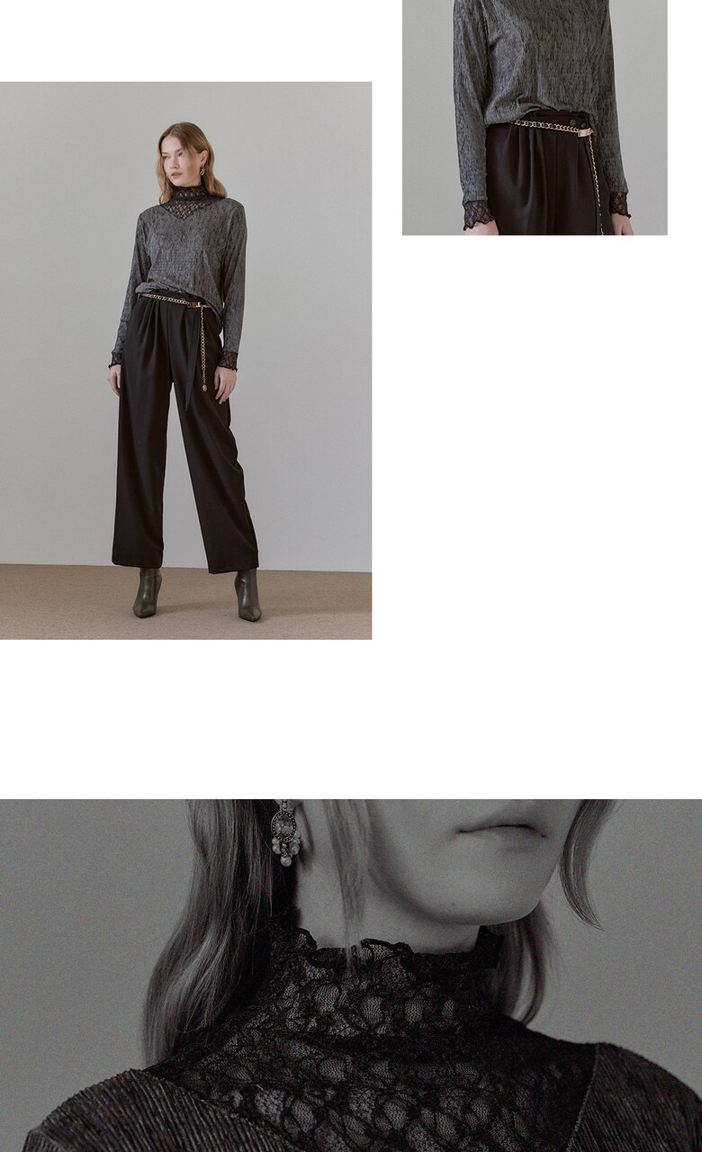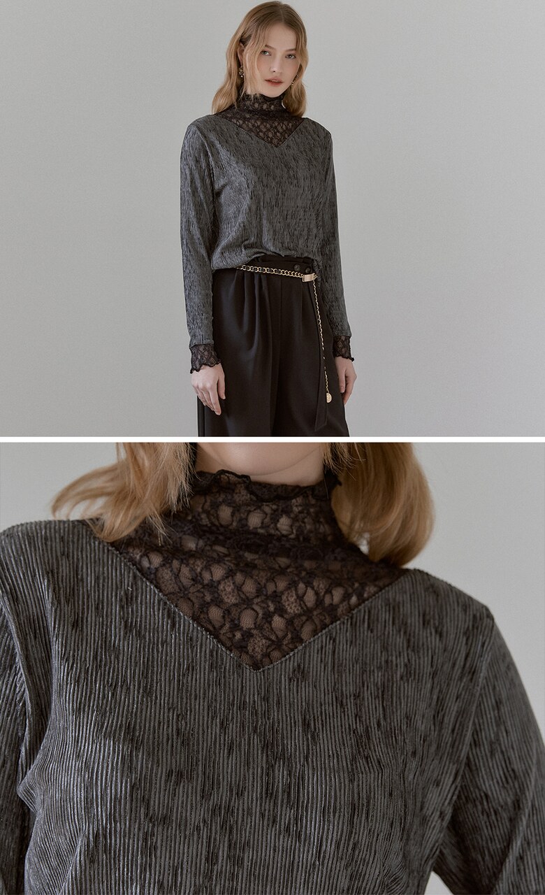 레이스 블록 메탈믹스 벨벳 반목폴라 티셔츠