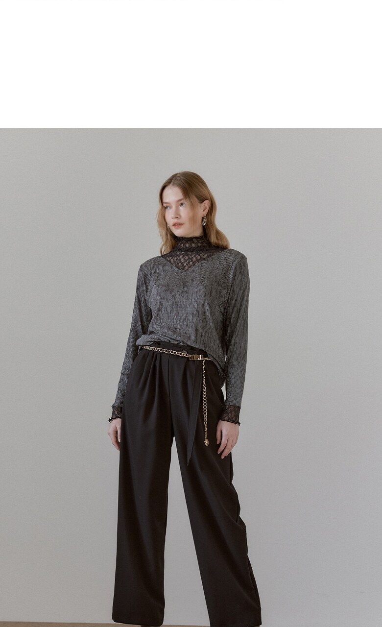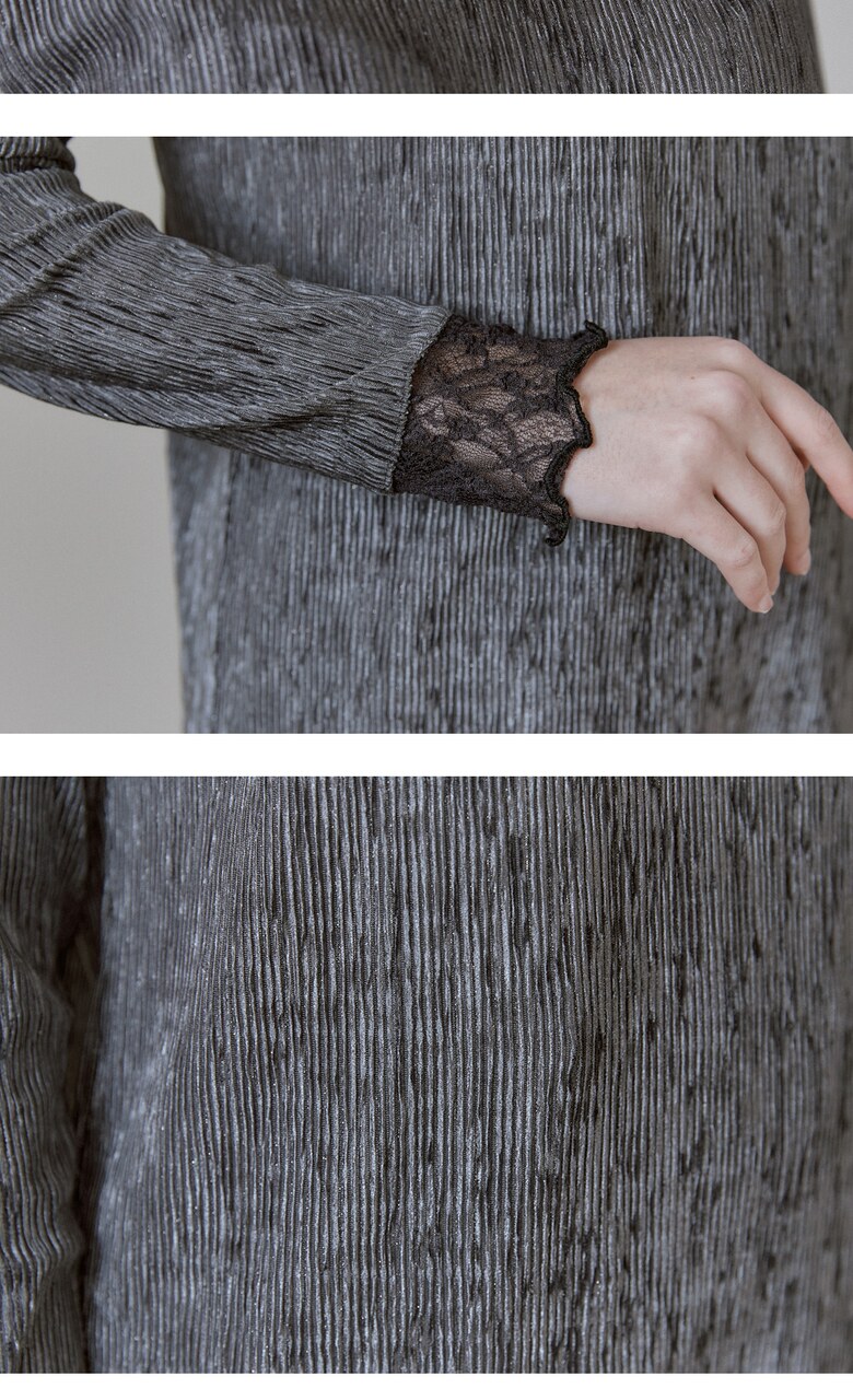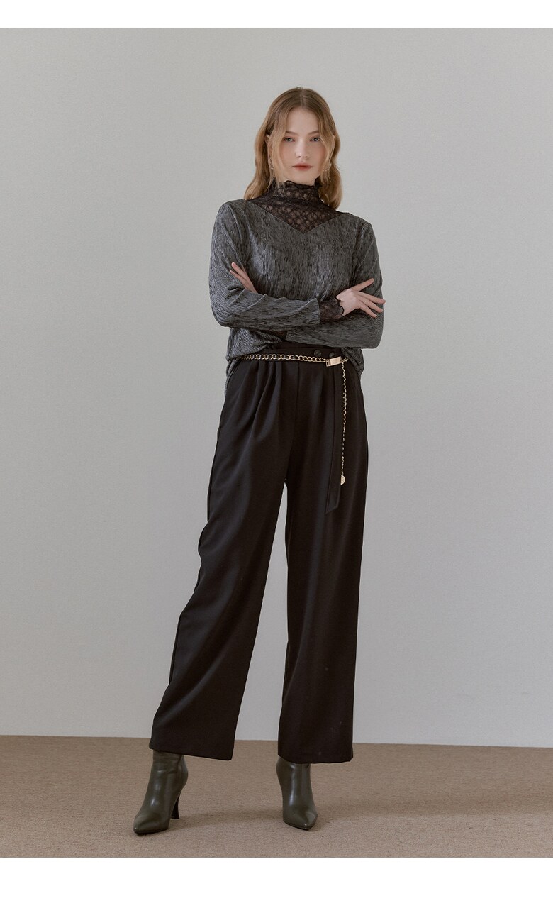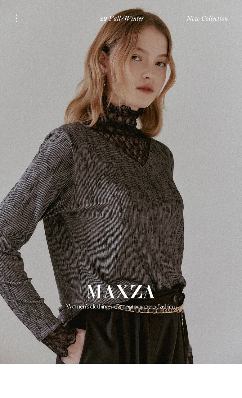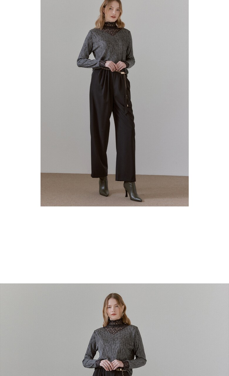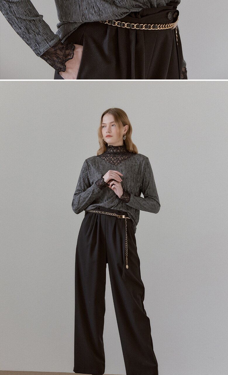 레이스 블록 메탈믹스 벨벳 반목폴라 티셔츠