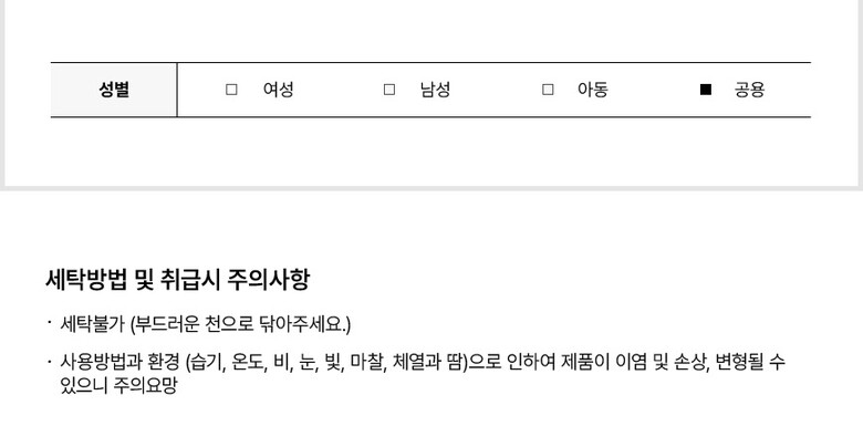 • 처음 배송된 상품상태와 다를 경우(세탁/착용 후 외출하신 경우) 반품이 불가합니다.