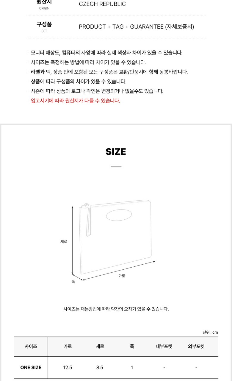 3. 치수 가로 12.5cm X 세로 8.5cm X 폭 1cm