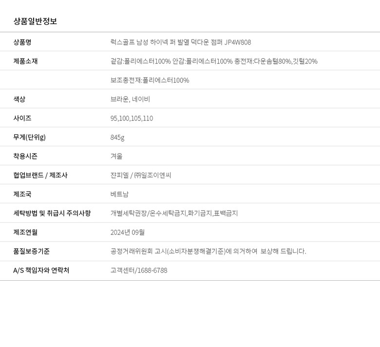 1. 제품 소재 (섬유의 조성 또는 혼용률을 백분율로 표시, 기능성인 경우 성적서 또는 허가서) 상세설명참고