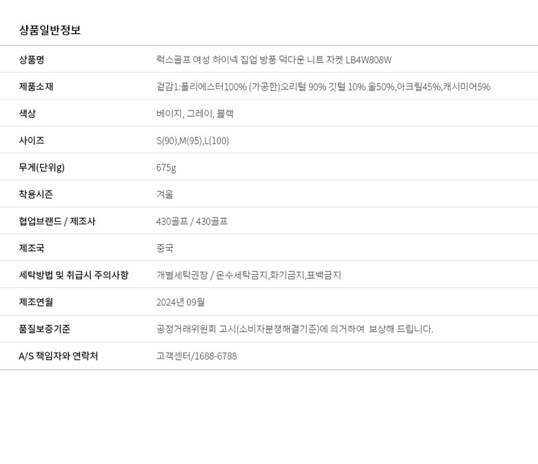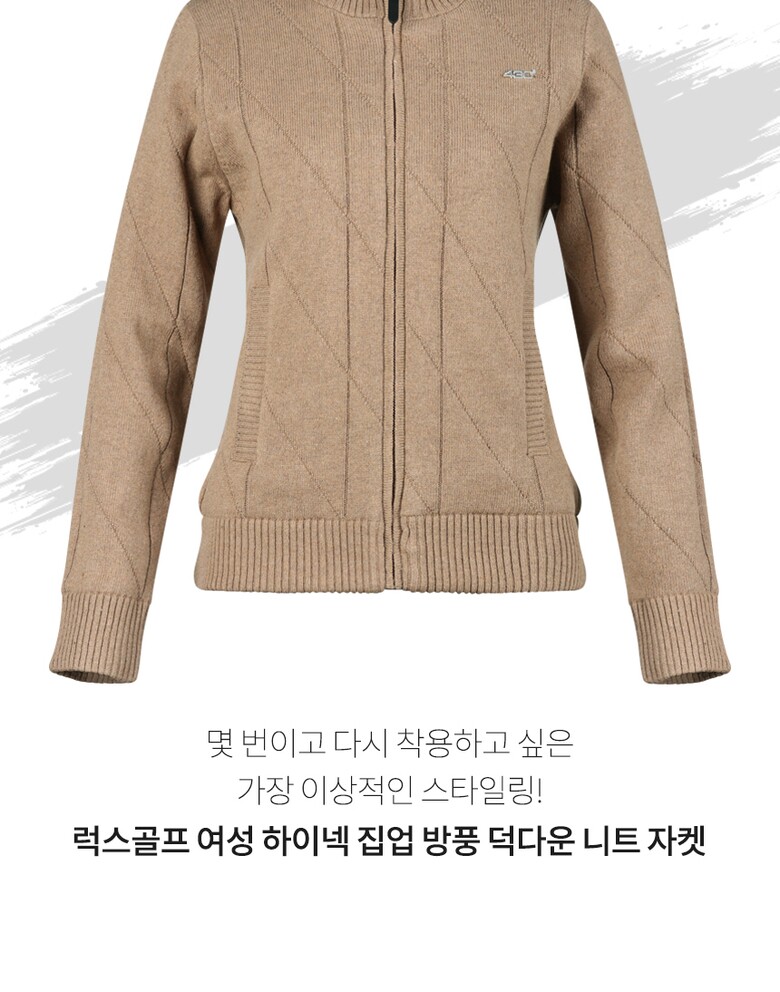 골피아 LB4W808W 여성 하이넥 집업 방풍 덕다운 니트 자켓