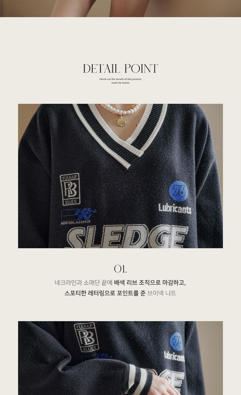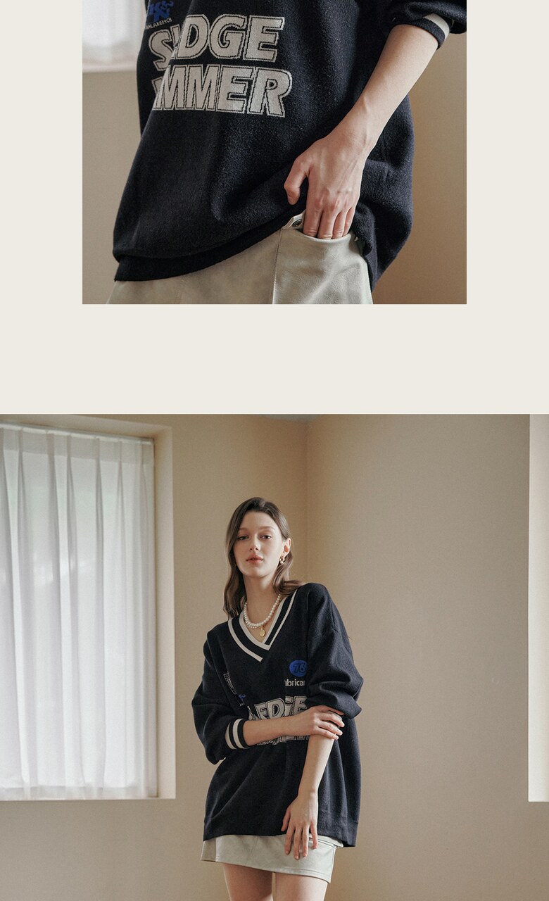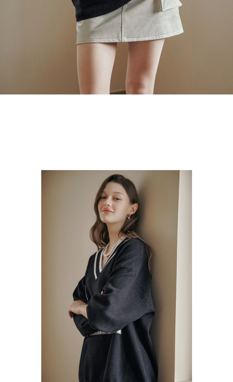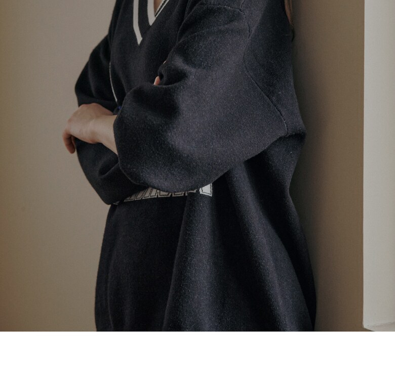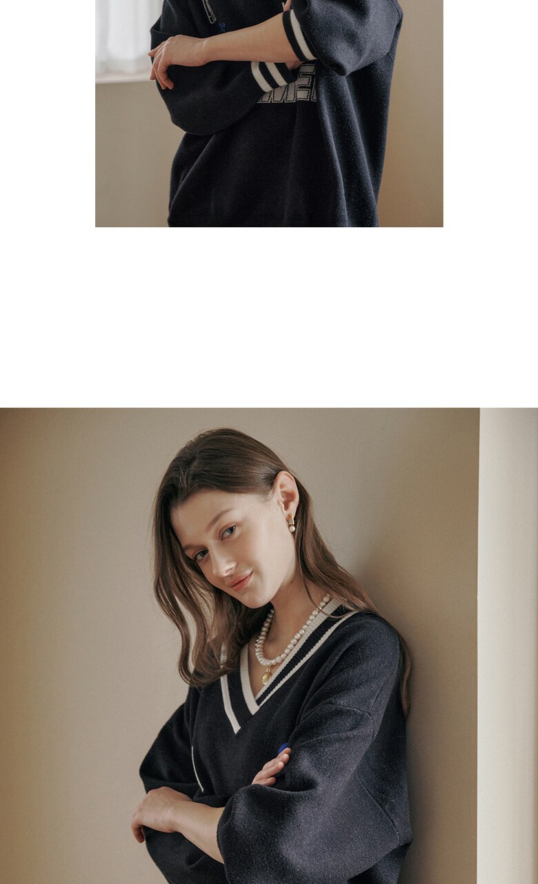 네크라인과 소매 끝단에 배색 리브 조직으로