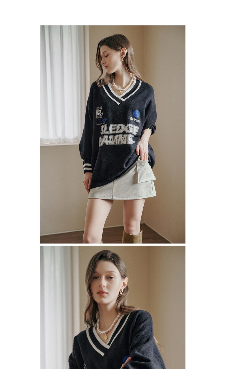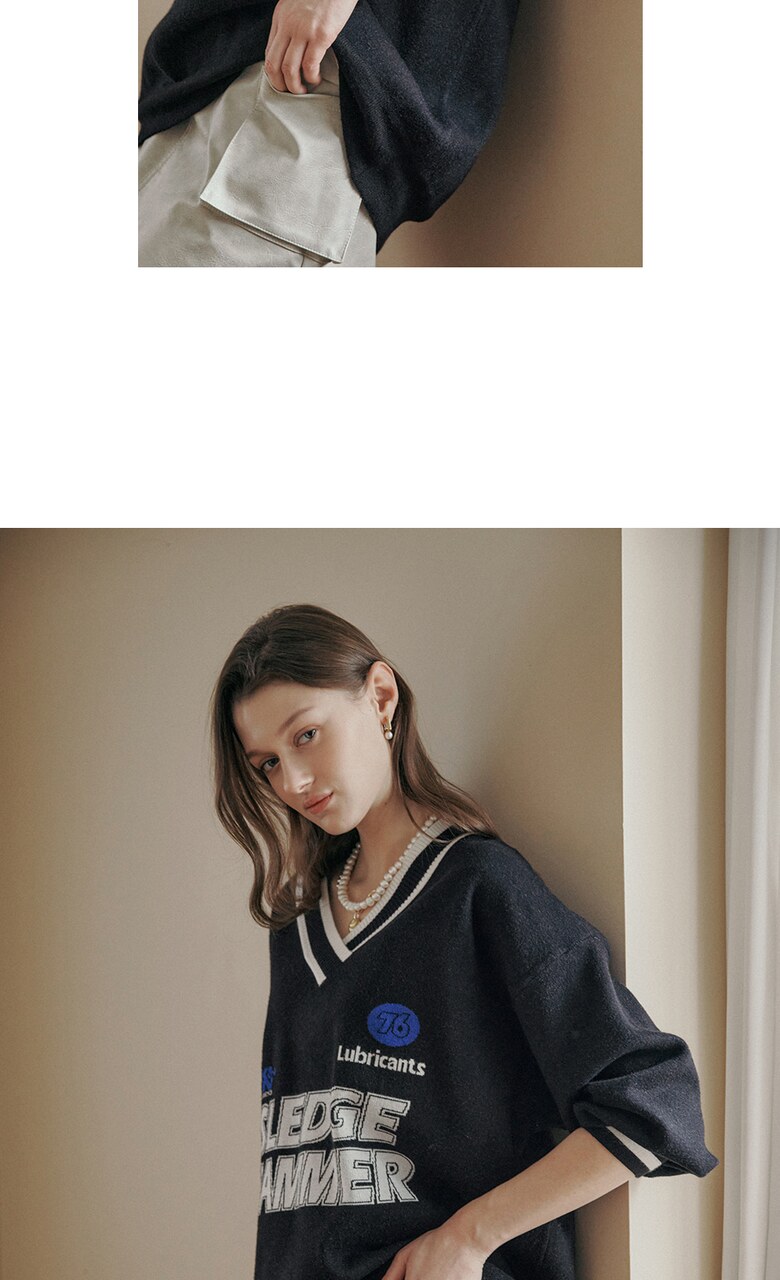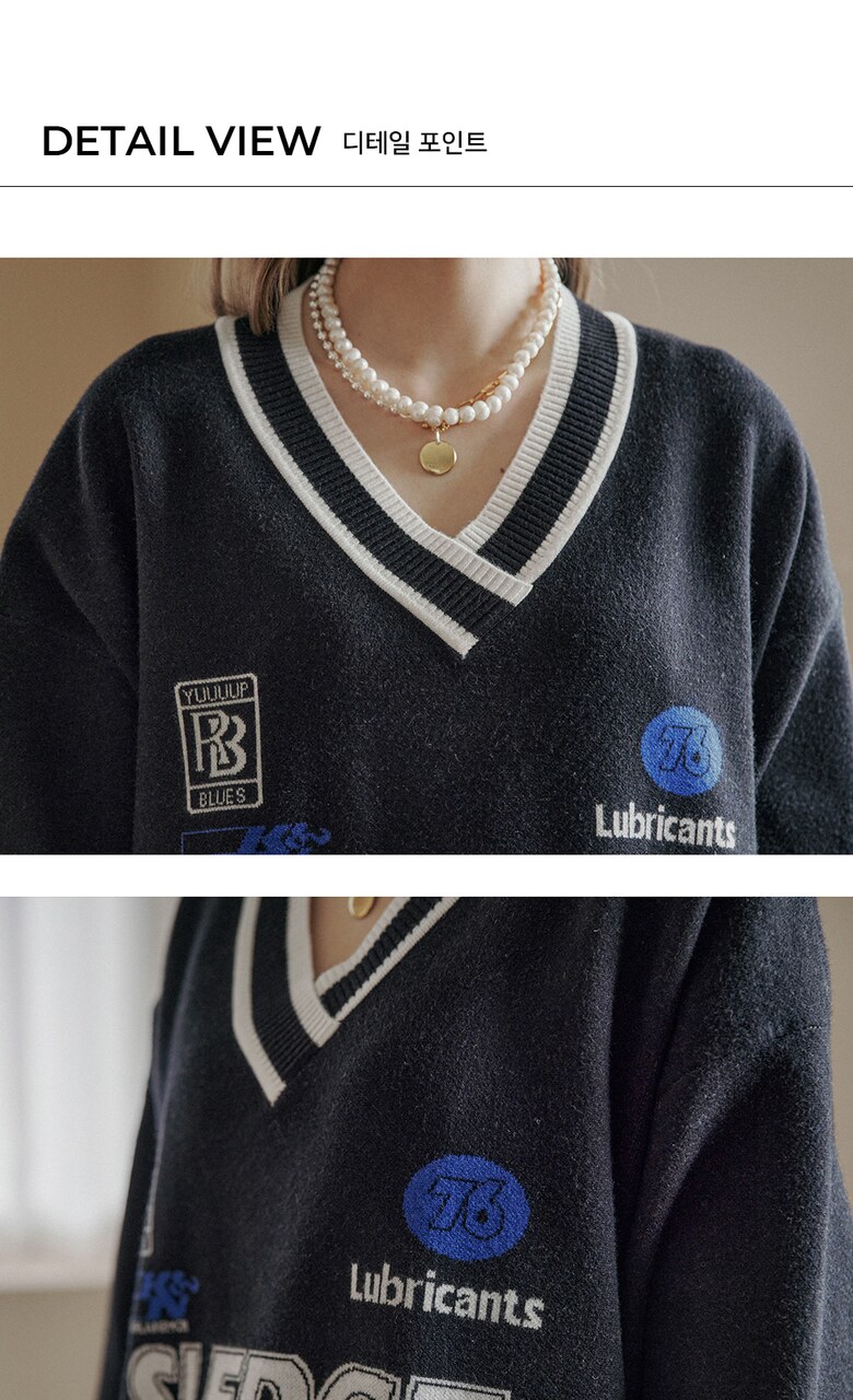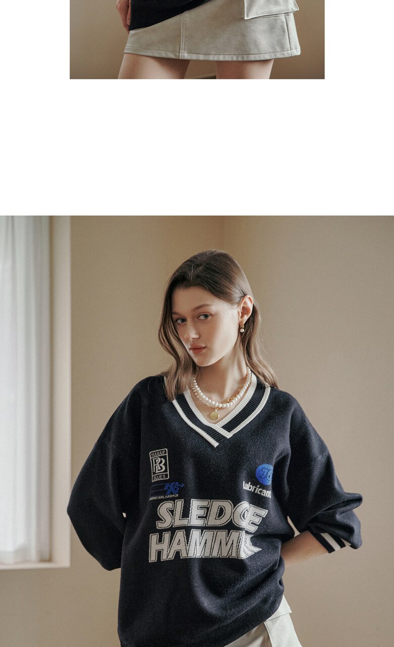 네크라인과 소매 끝단에 배색 리브 조직으로