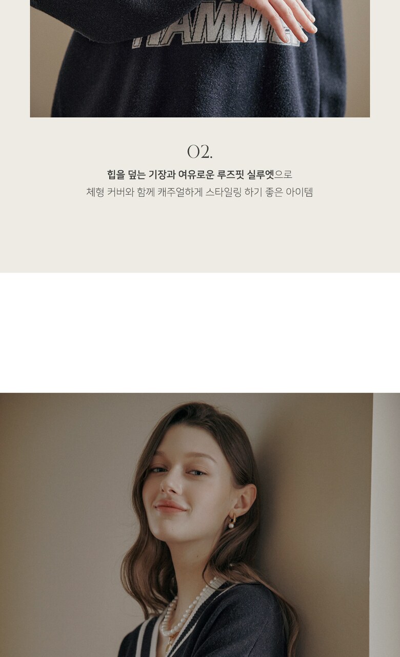 힙을 덮는 기장과 여유로운 루즈핏 실루엣으로