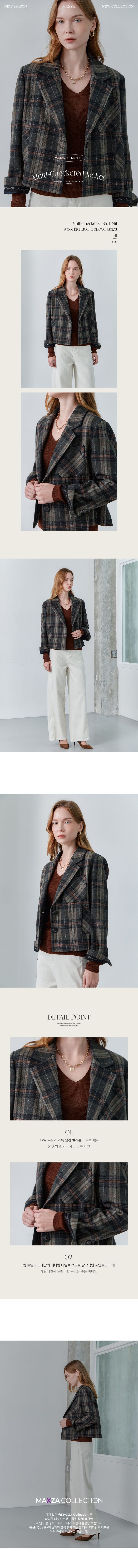 멀티 체크 뒷트임 울혼방 크롭 자켓(카키)