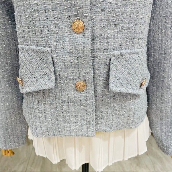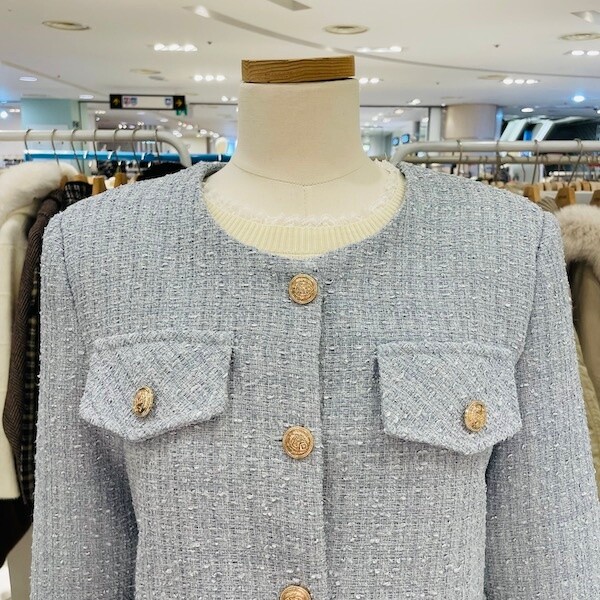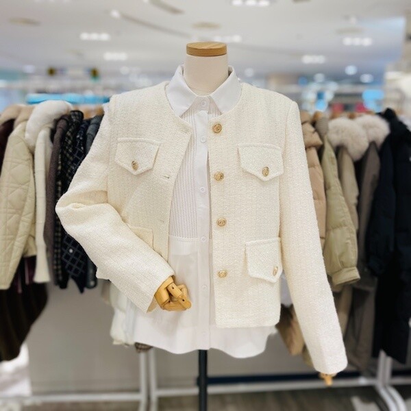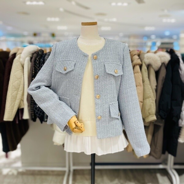 A25JK5112_노카라 골드 버튼 트위드 자켓