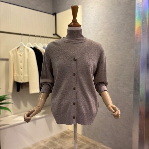 2025년 S/S 신상 모 혼방 셋업 브이넥 가디건 입니다.
