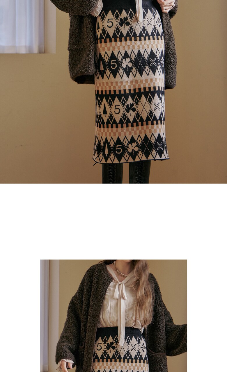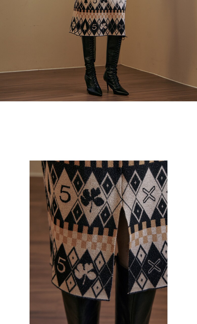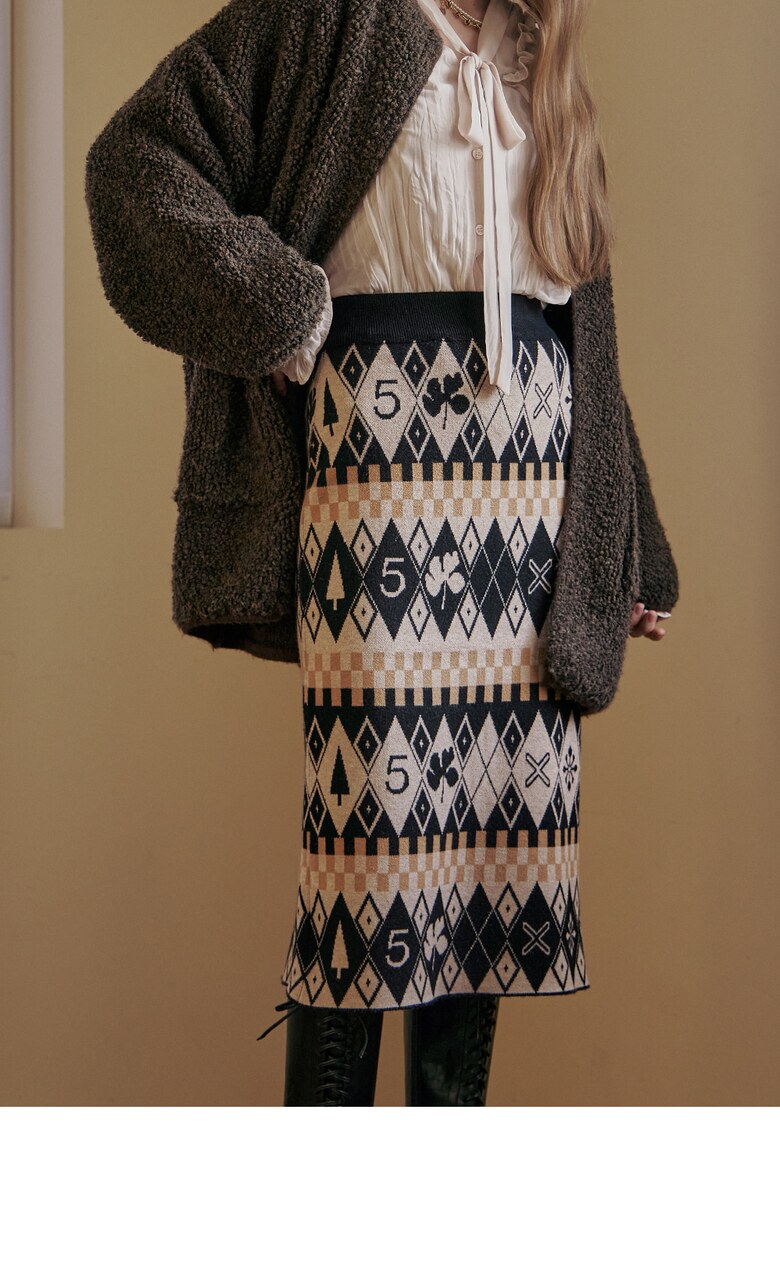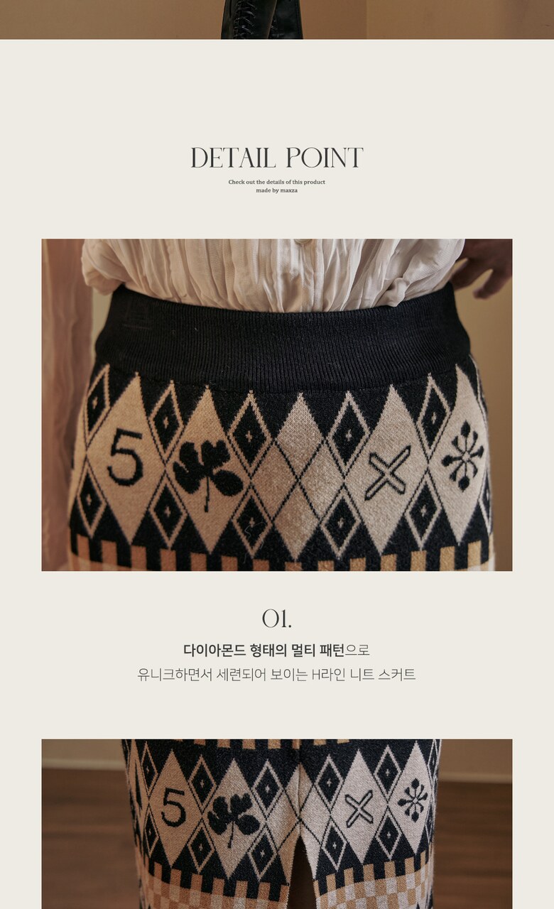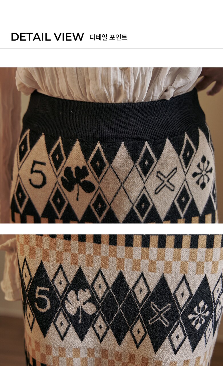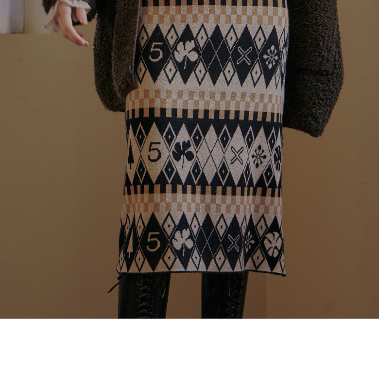 멀티 다이아몬드 패턴 H라인 니트 스커트