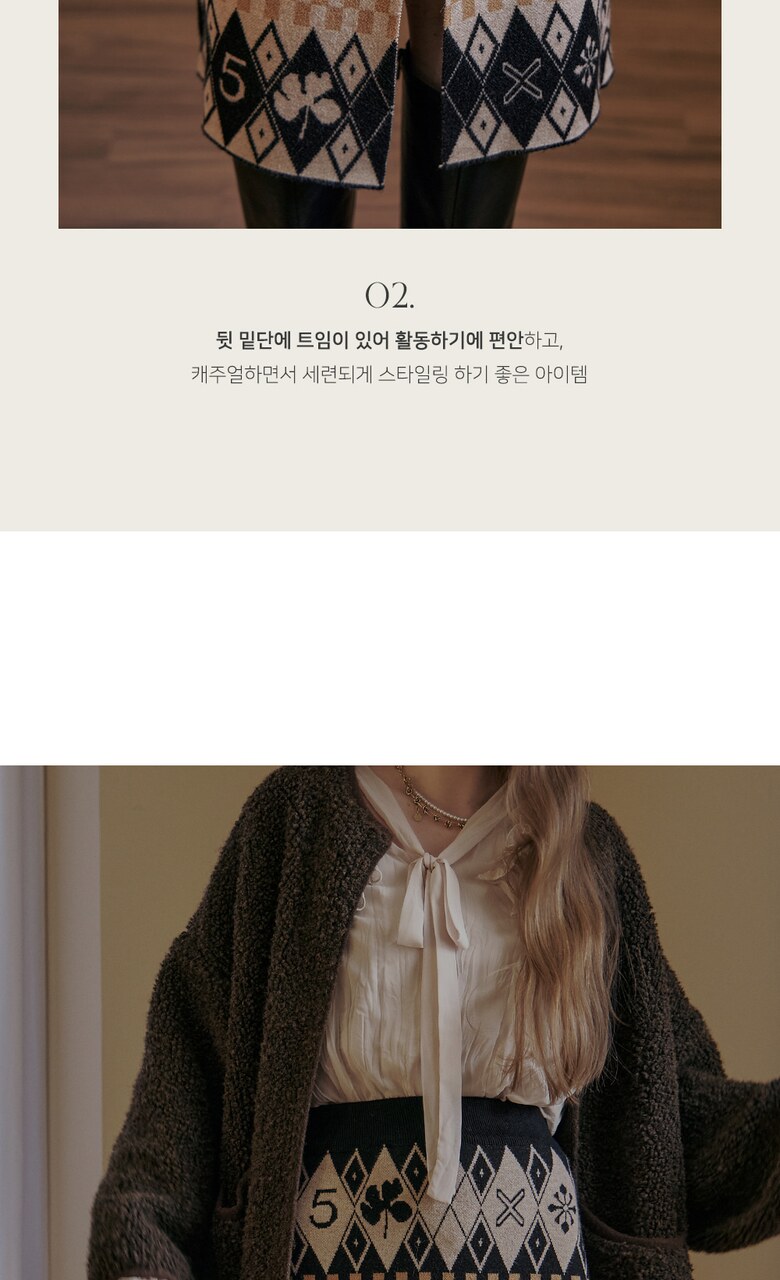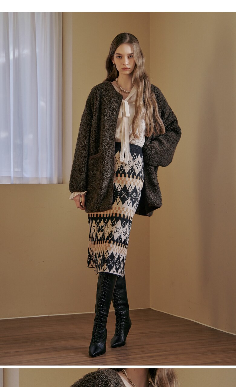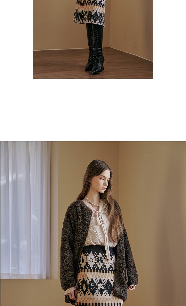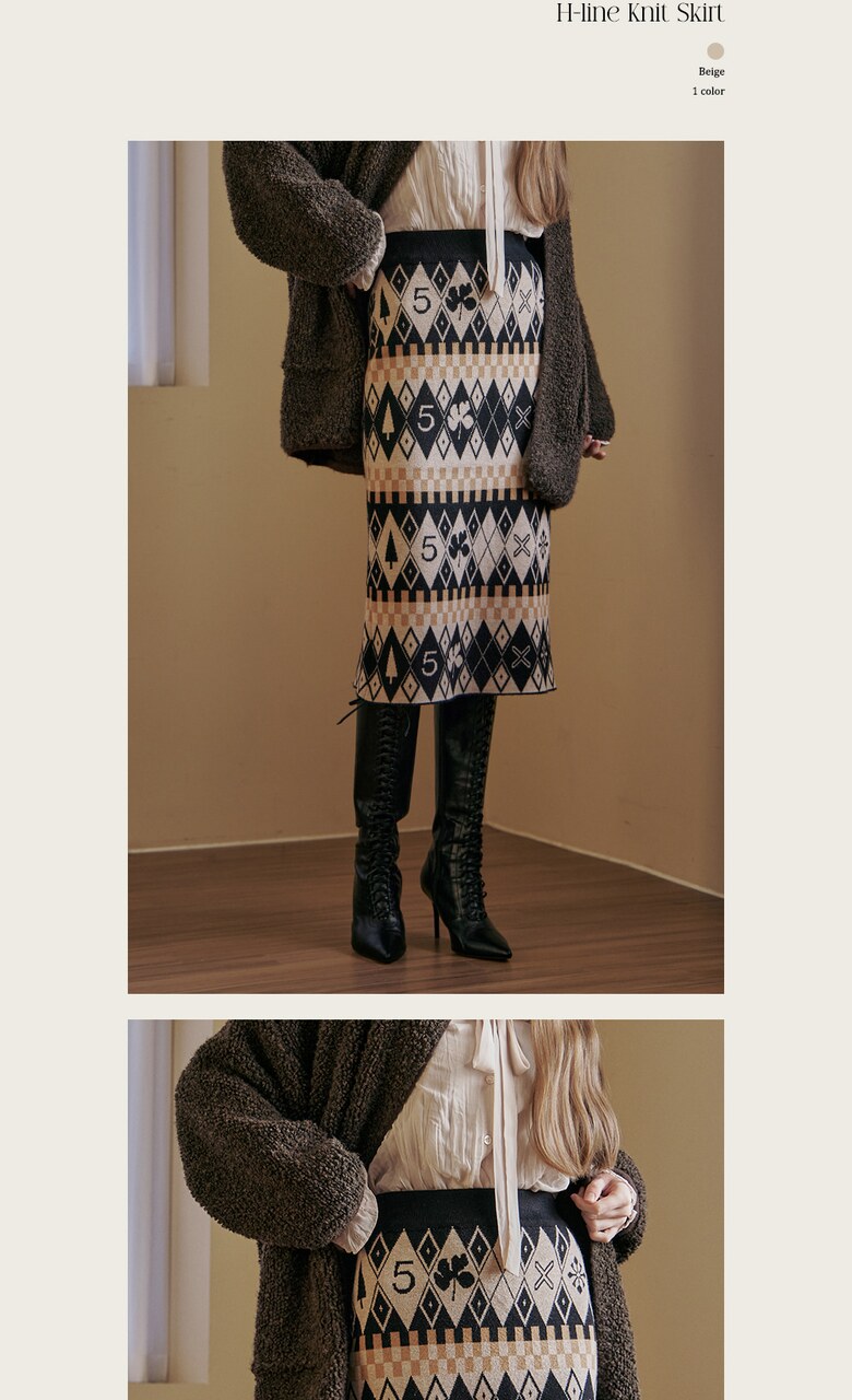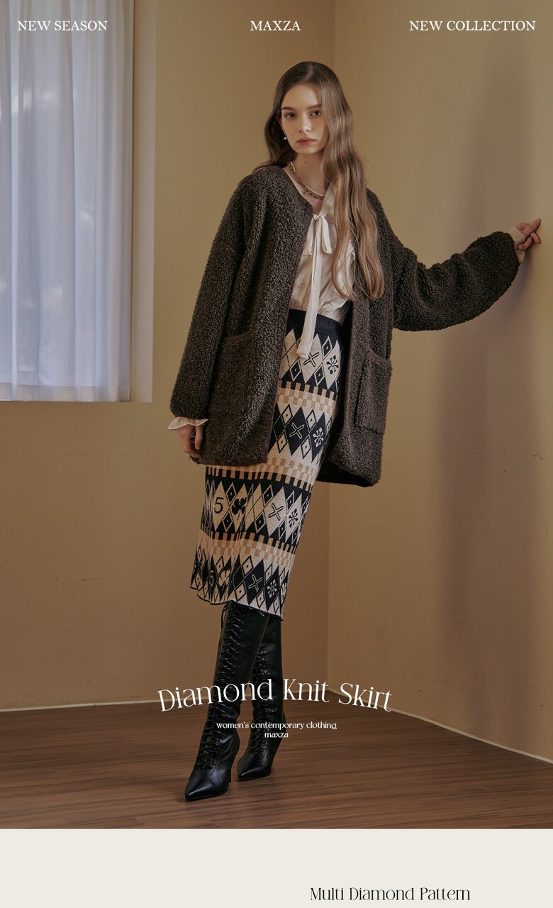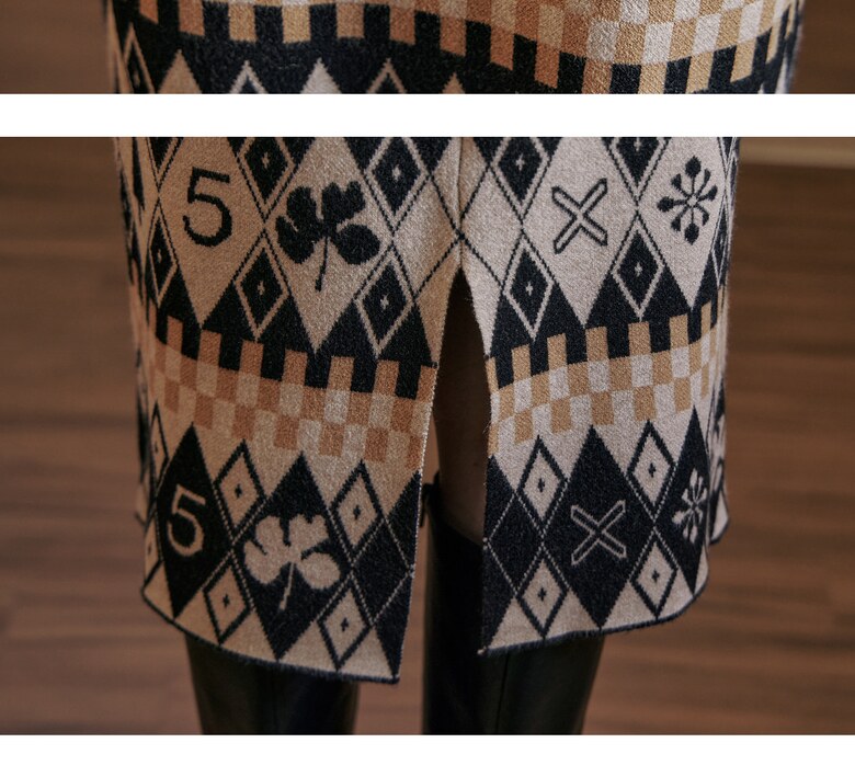 멀티 다이아몬드 패턴 H라인 니트 스커트