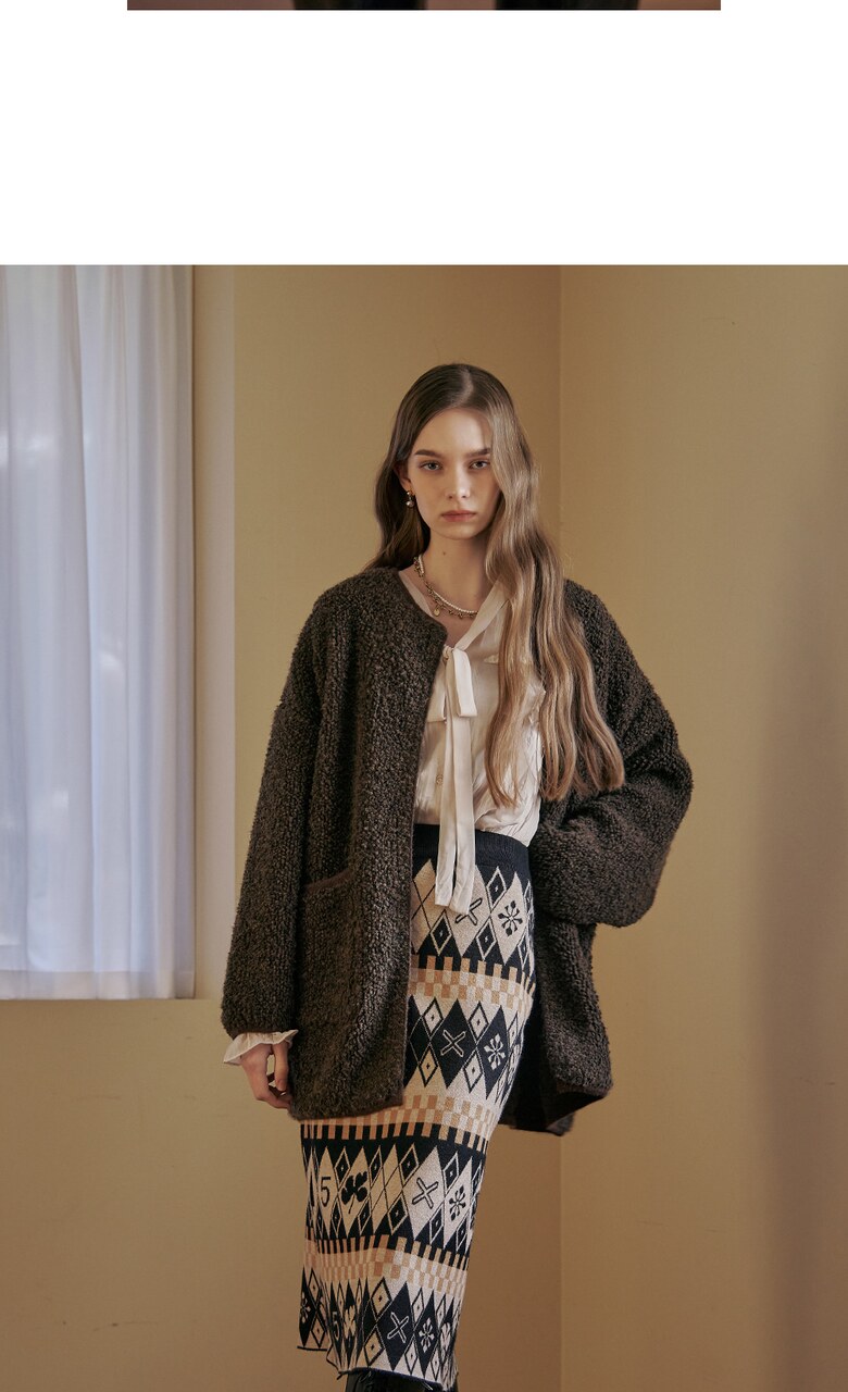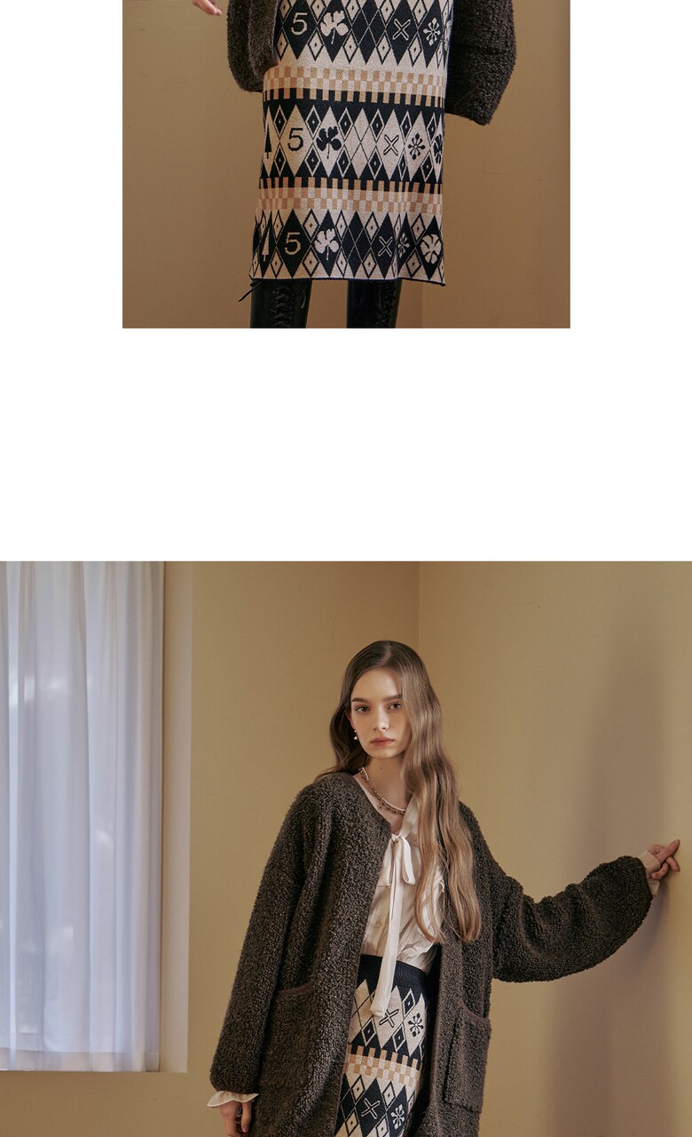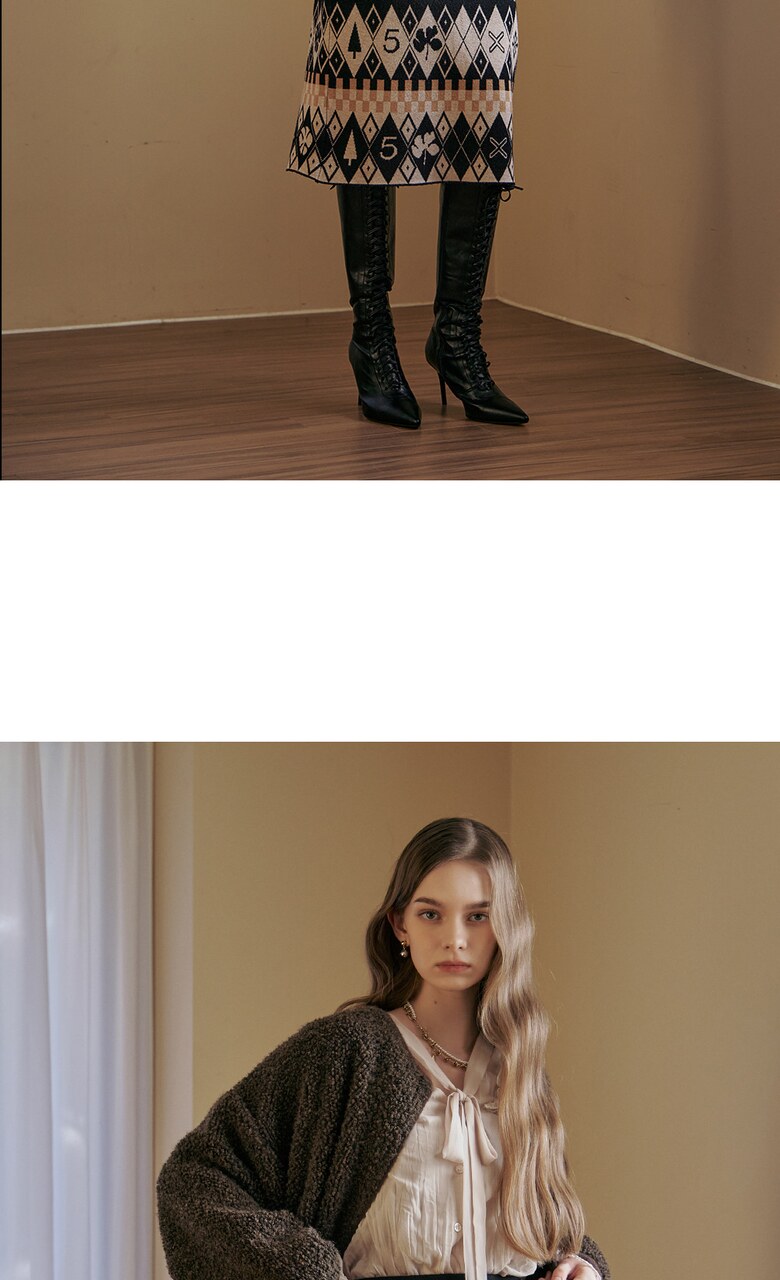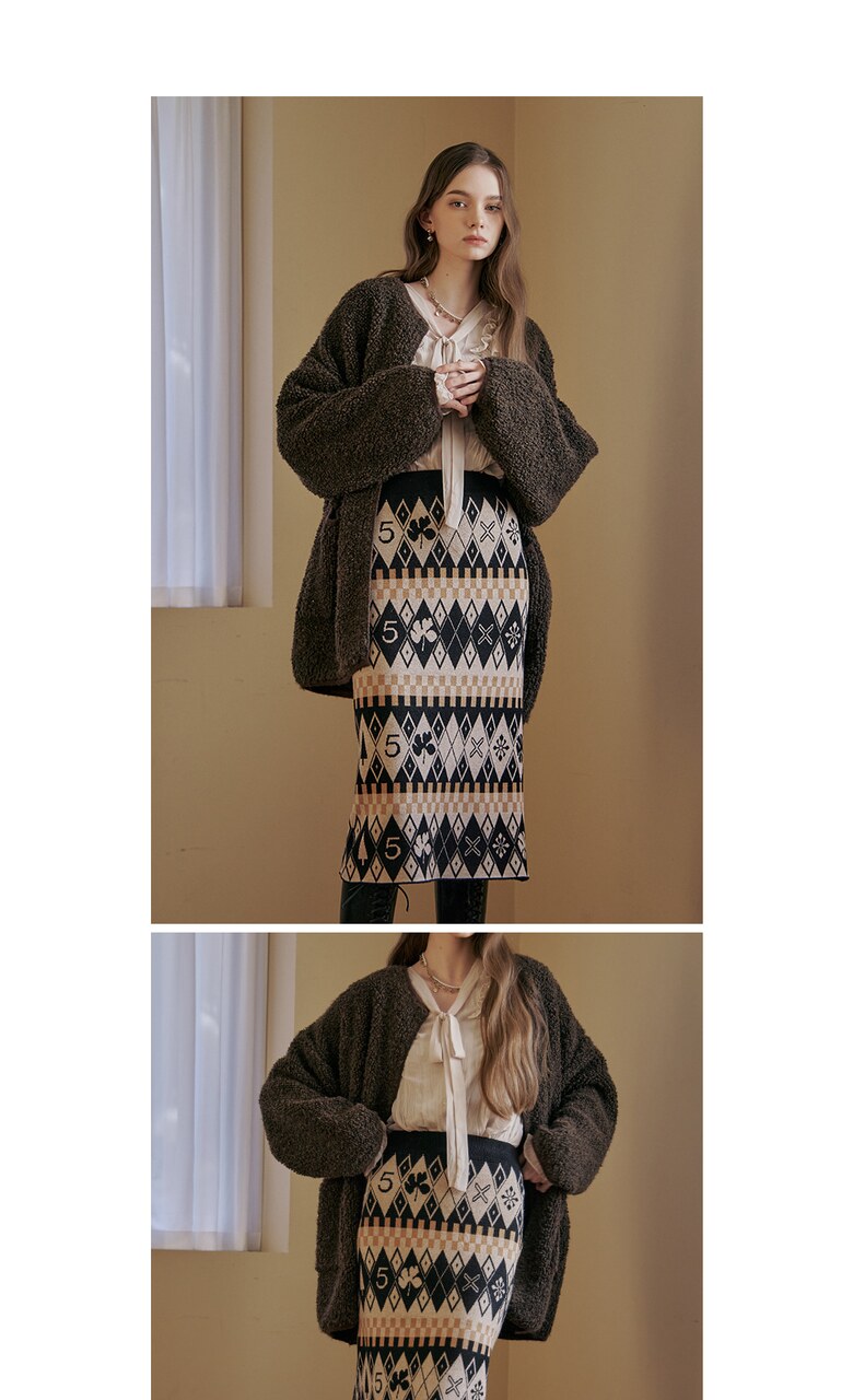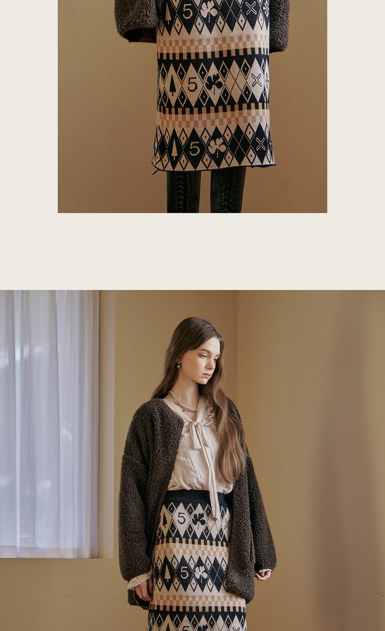 멀티 다이아몬드 패턴 H라인 니트 스커트