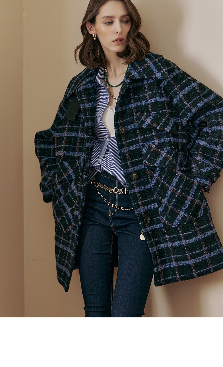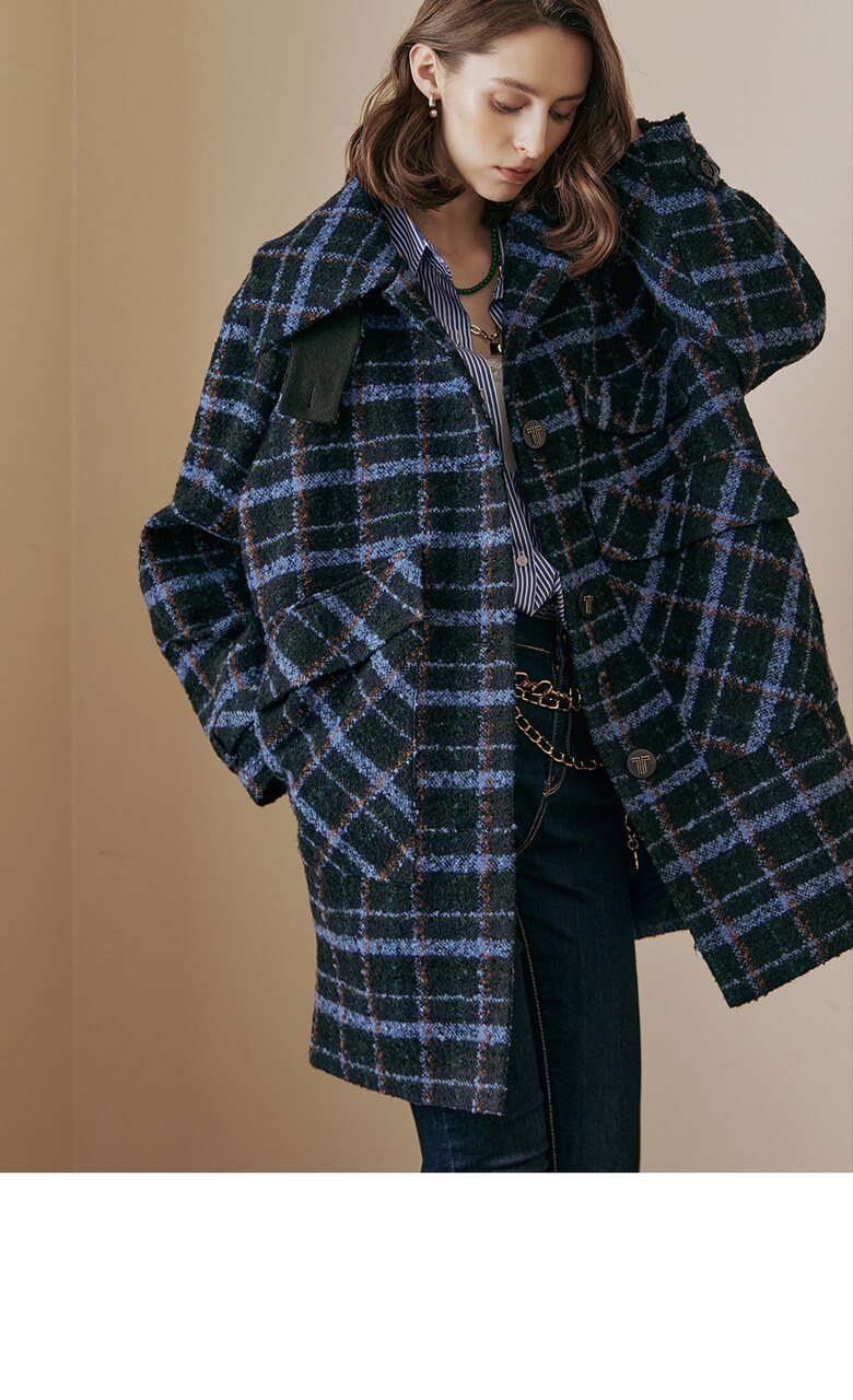 유니크한 컬러의 부클 체크 패턴이 멋스러운