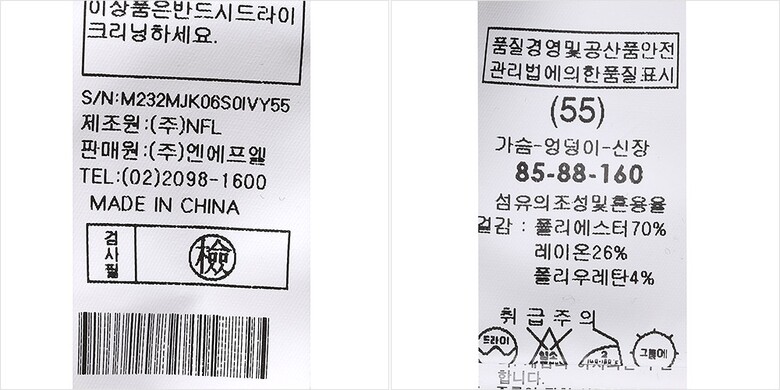 | 1. 제품 소재 (섬유의 조성 또는 혼용률을 백분율로 표시, 기능성인 경우 성적서 또는 허가서) | 겉감-폴리에스터70% 폴리우레탄4% 레이온26% |