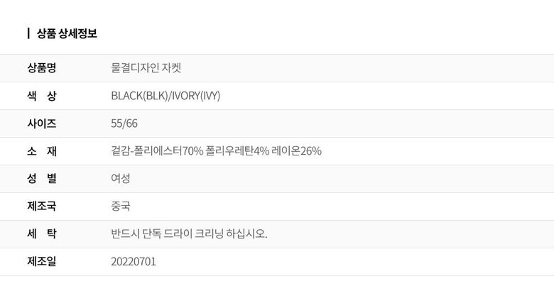 | 6. 세탁방법 및 취급시 주의사항 | 상세페이지 참조 |
