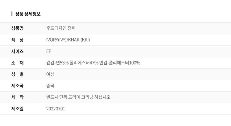 | 2. 색상 | 색상:IVORY(IVY)/KHAKI(KKI) |