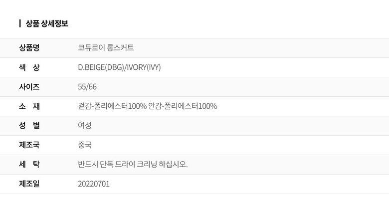 • 아울렛 상품의 특성 상 “택이 훼손”된 경우가 있으나 이는 불량이 아니며 무료 반품 대상 상품이 아닙니다.