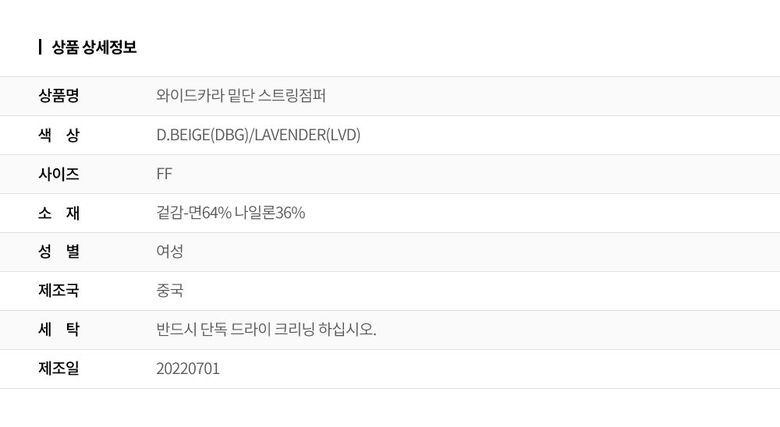 | 6. 세탁방법 및 취급시 주의사항 | 상세페이지 참조 |