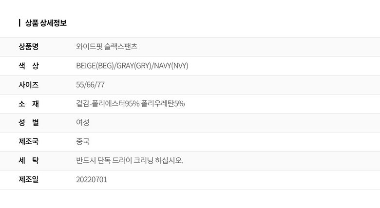 | 2. 색상 | 색상:BEIGE(BEG)/GRAY(GRY)/NAVY(NVY) |