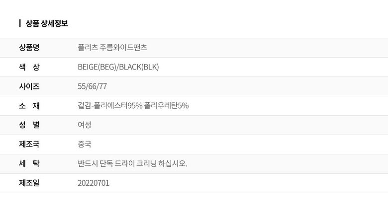 | 6. 세탁방법 및 취급시 주의사항 | 상세페이지 참조 |